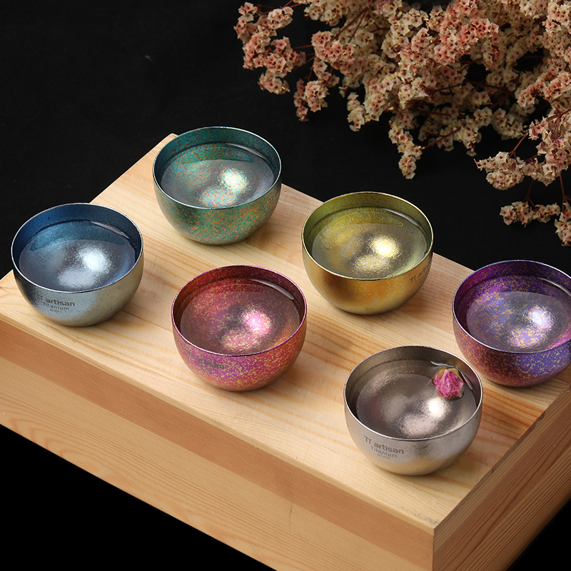 티타늄 장인 순수 티타늄 더블 레이어 작은 찻잔 얼음 꽃 차 세트 찻그릇 마스터 컵 작은 와인 잔 티타늄 컵 Ta8743
