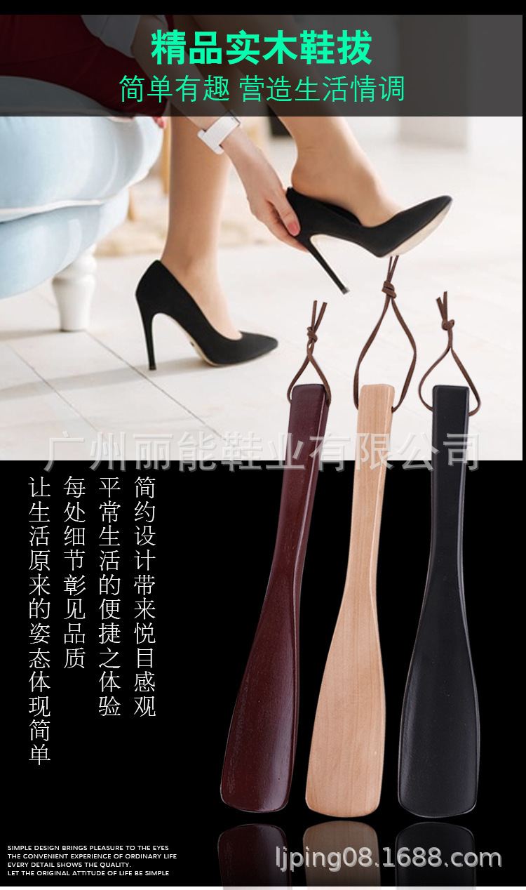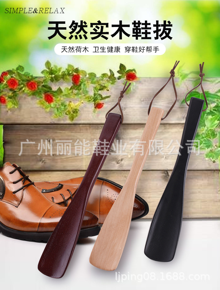 도매 원목 옷걸이 레이저 각인 호텔 용품 나무 구둣주걱 게으름뱅이 신발 착용 도구 나무 신발 끌개