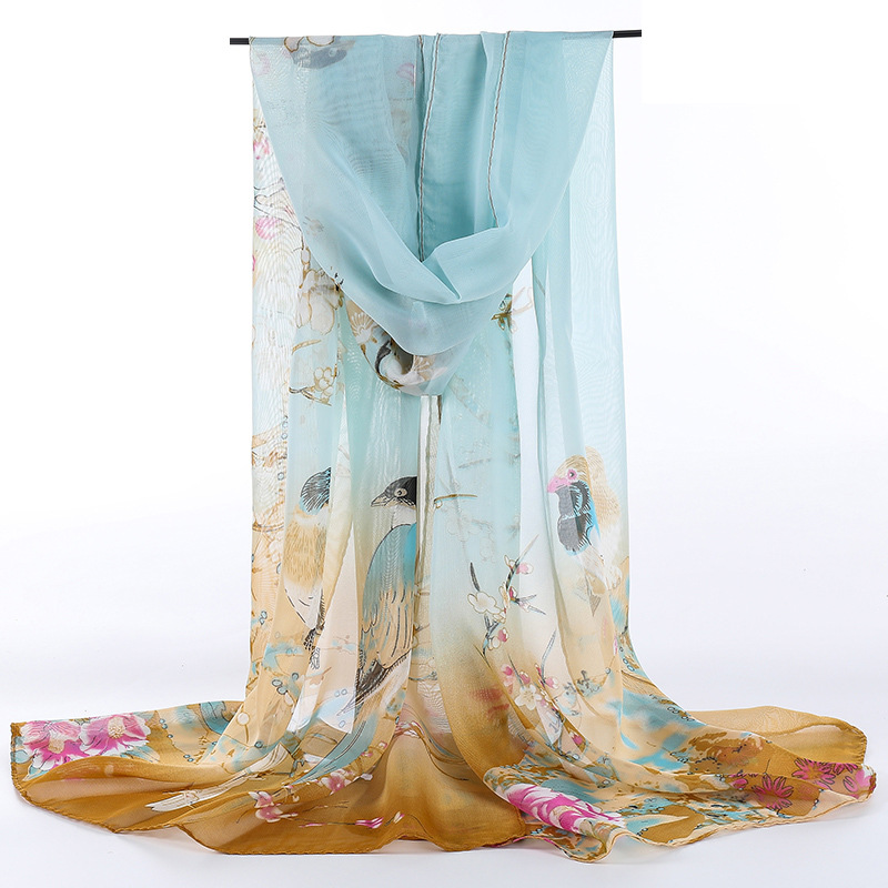 실크 스카프 여성의 가을과 겨울 다용도 서양 스타일 유행 숄 봄과 가을 한국 스타일 스카프 얇은 긴 쉬폰 대형 스카프 스카프 스카프