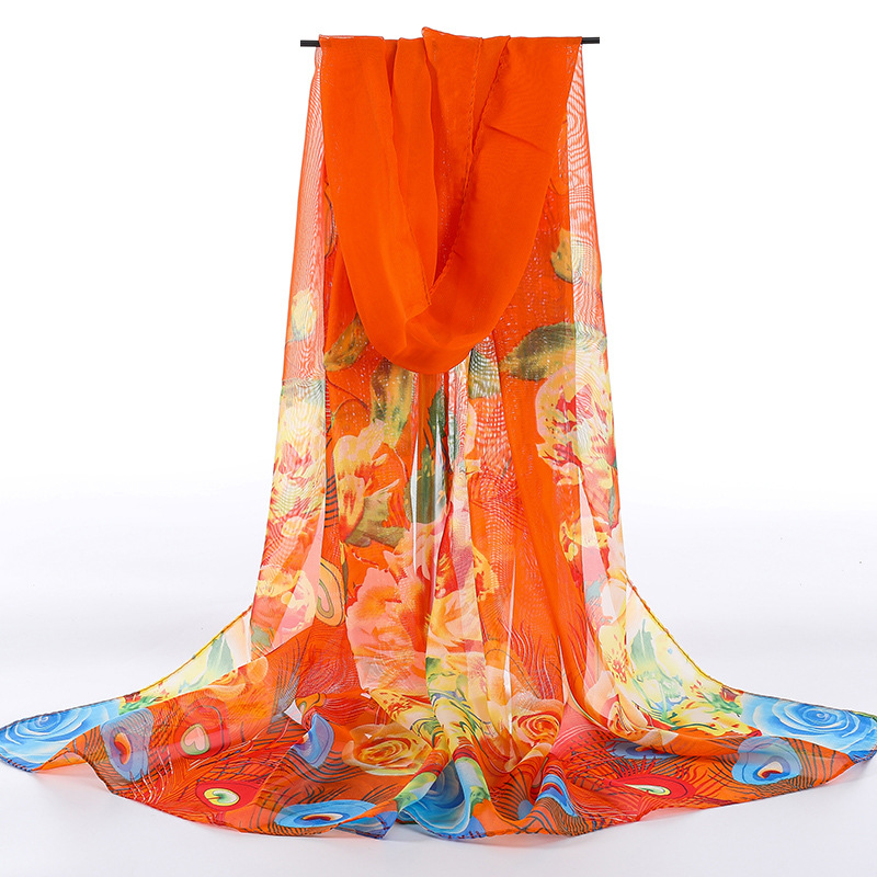 丝巾女秋冬款百搭洋气时尚披肩春秋韩版围巾薄长款雪纺大纱巾围脖