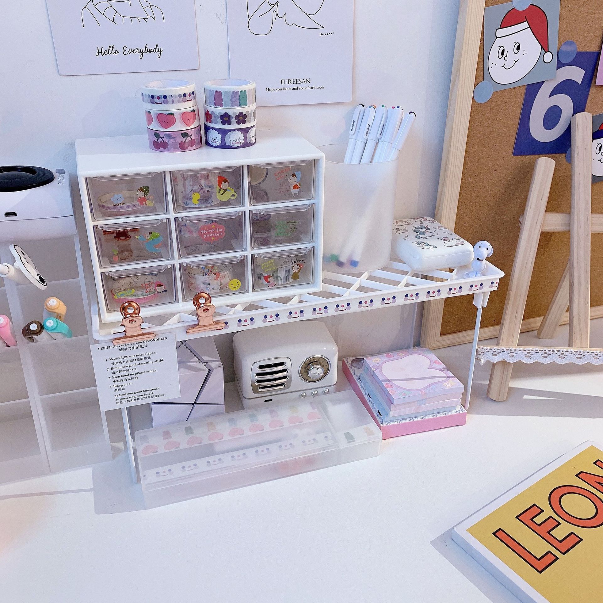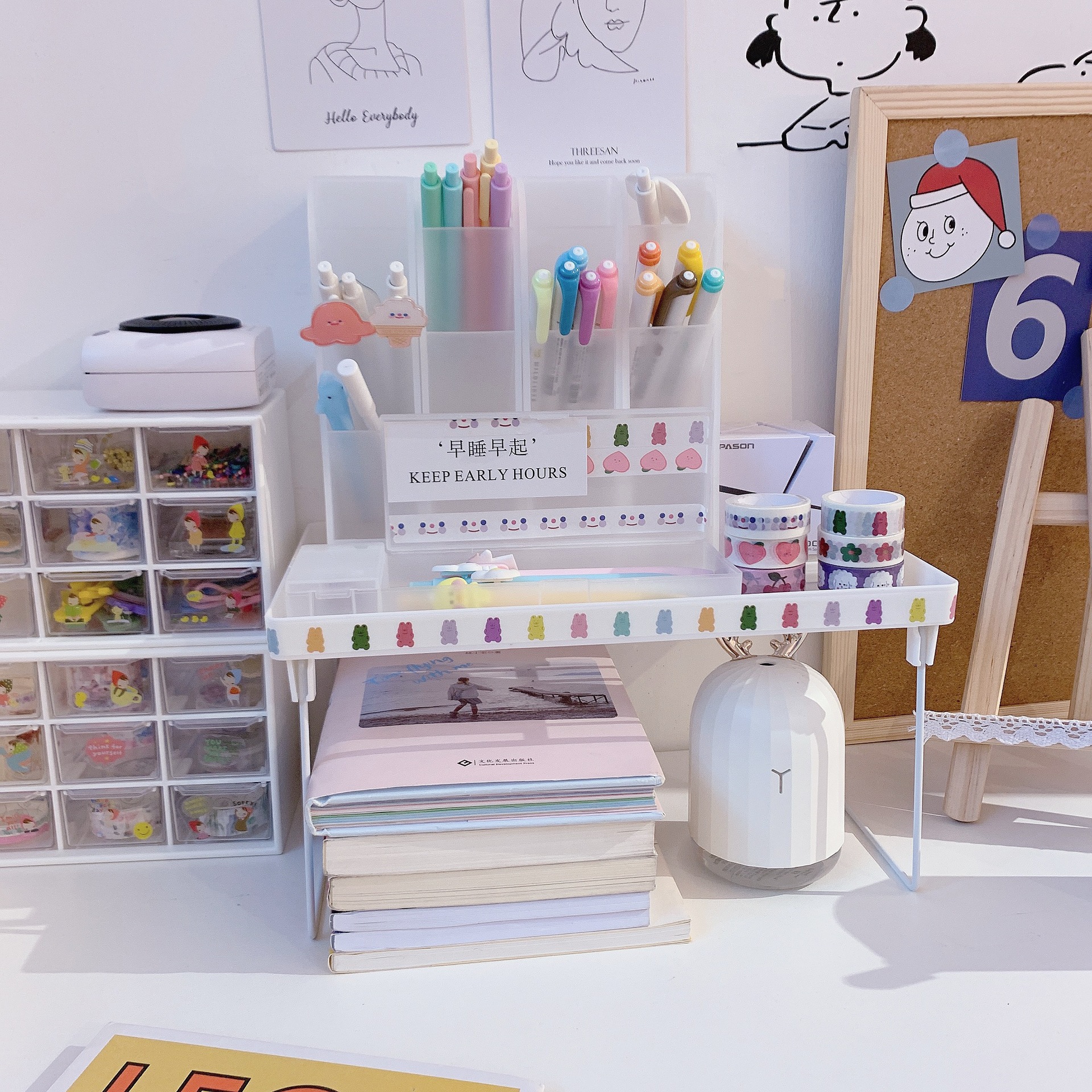 한국 in 인쇄되지 않은 스타일 간단한 접이식 스토리지 랙 학생 데스크탑 기지 상승 손 계정 문구 잡화 보관 랙스토어 가기
