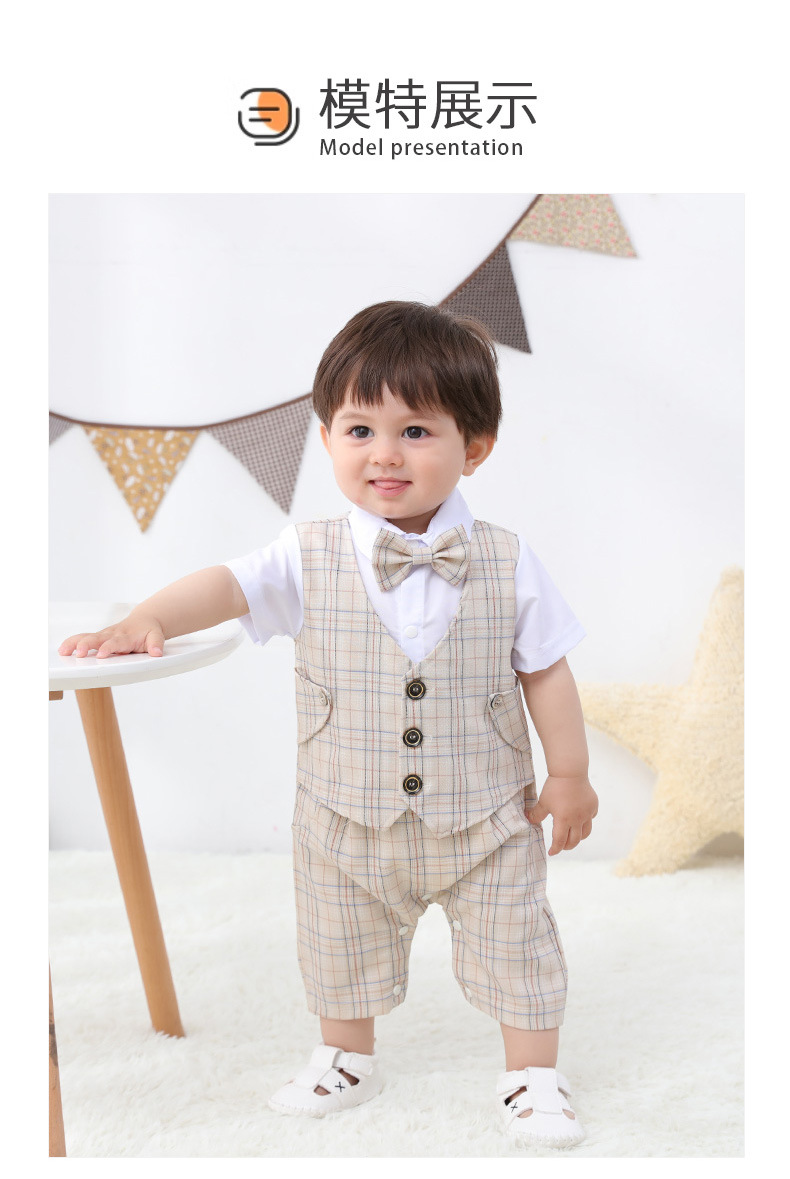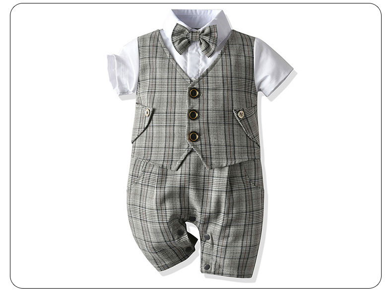 대외 무역 아동복 도매 남성 아기 격자 무늬 아동복 여름 반팔 가방 방귀 아기 점프 슈트