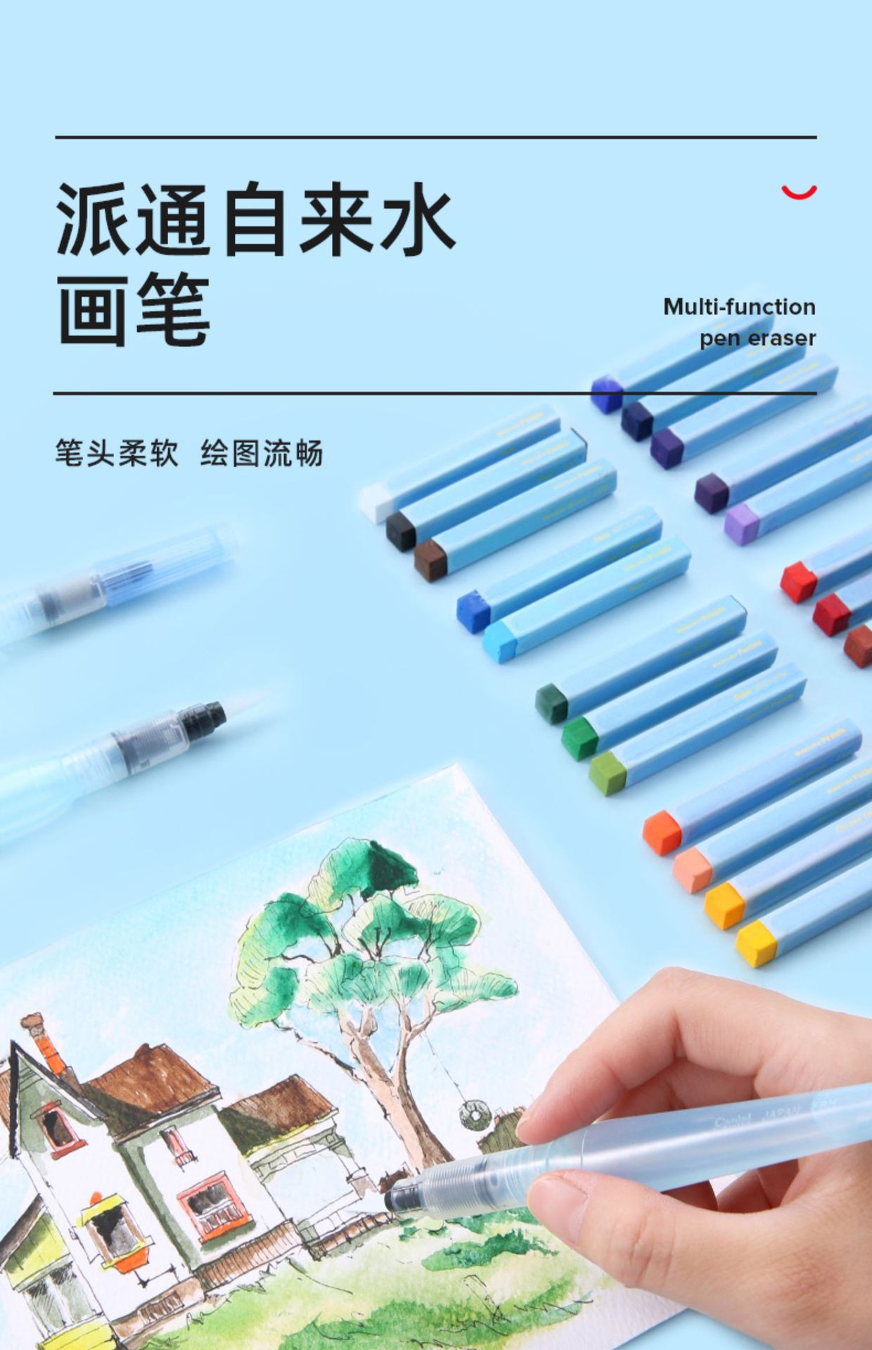 일본 펜텔 파이통 만년필 대용량 물 저장 펜 수채화 펜 수용성 컬러 납 고체 안료 브러시스토어 가기
