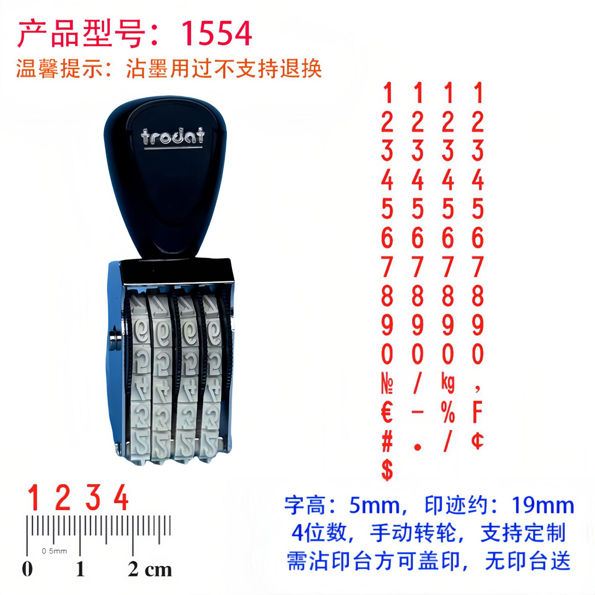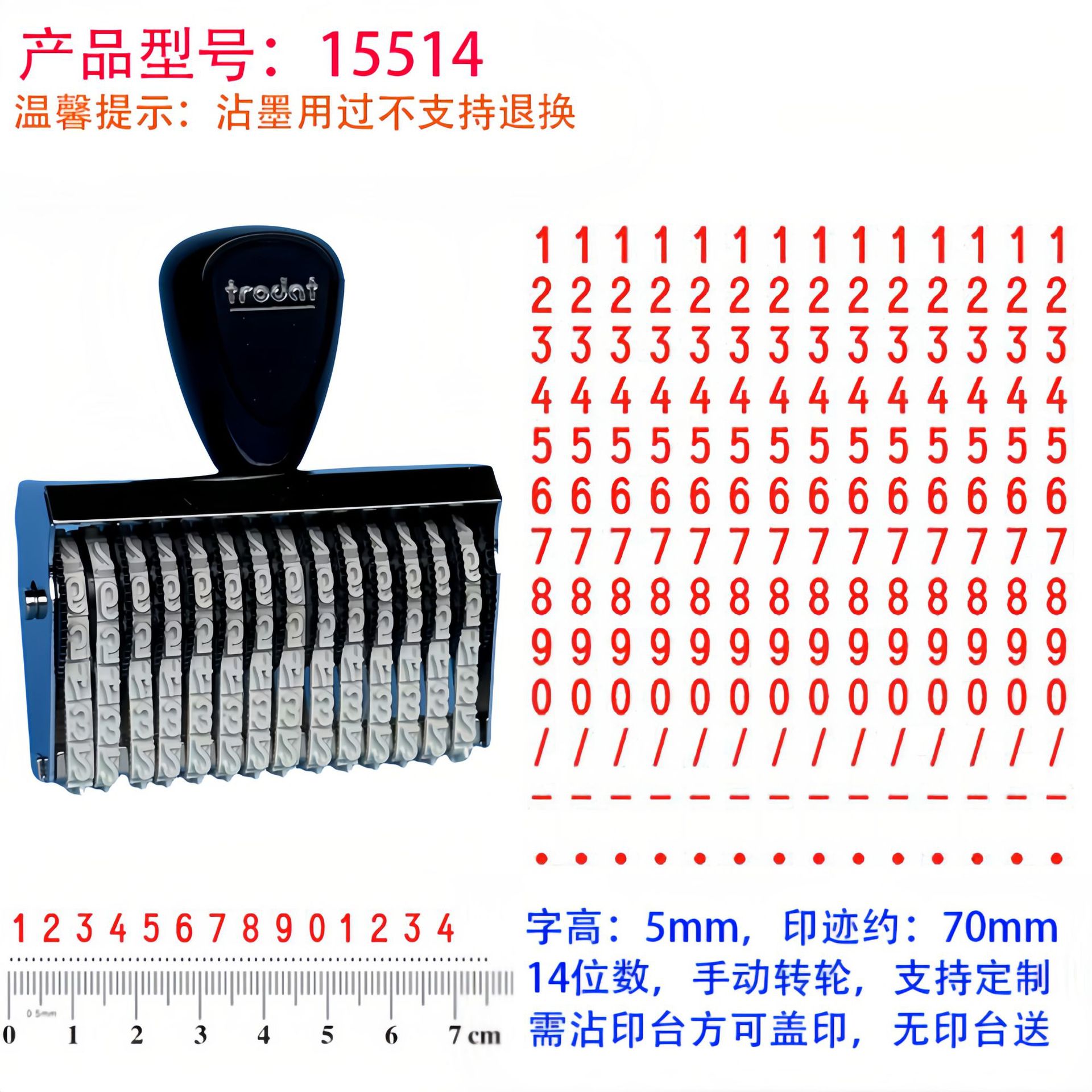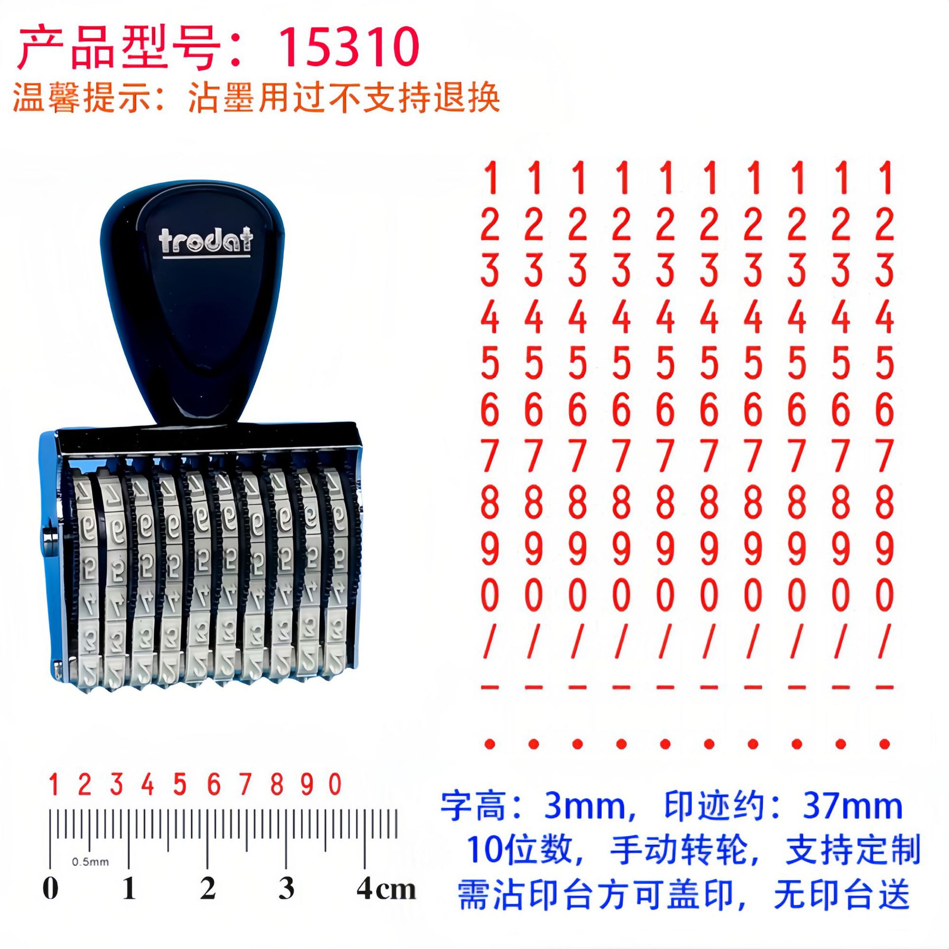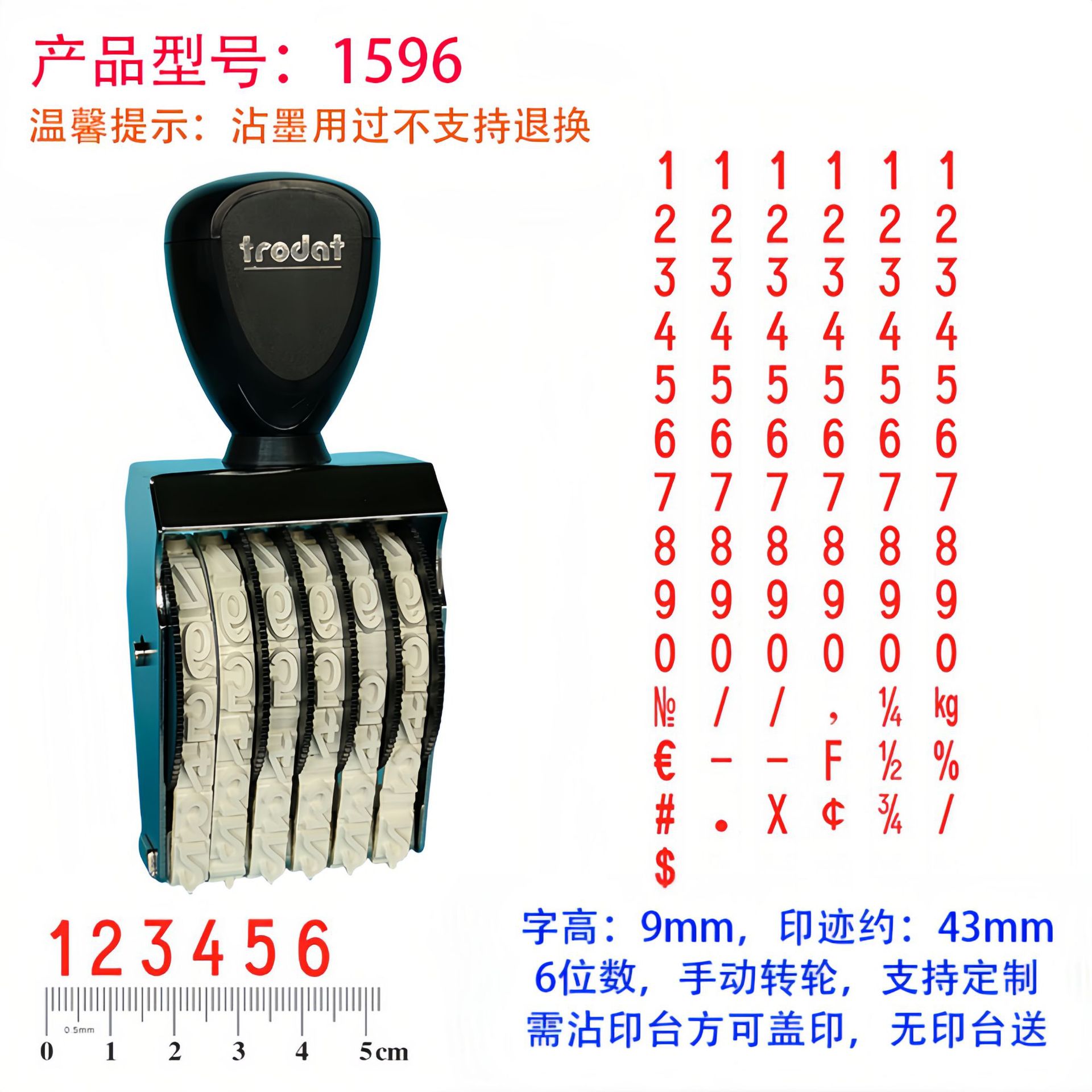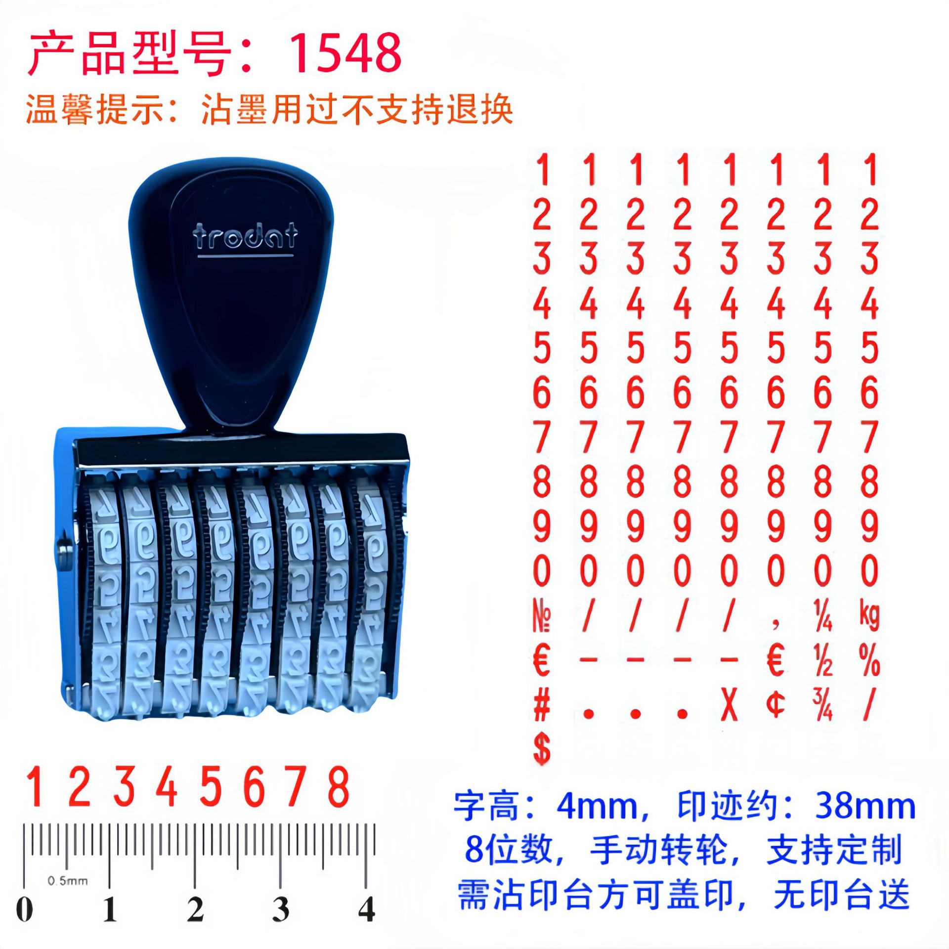 说明:  印章需手动调节转动,非自动跳号,需沾印台方可使用,此链接不含印台和印油,有需要印台和印油的请与客服联系
