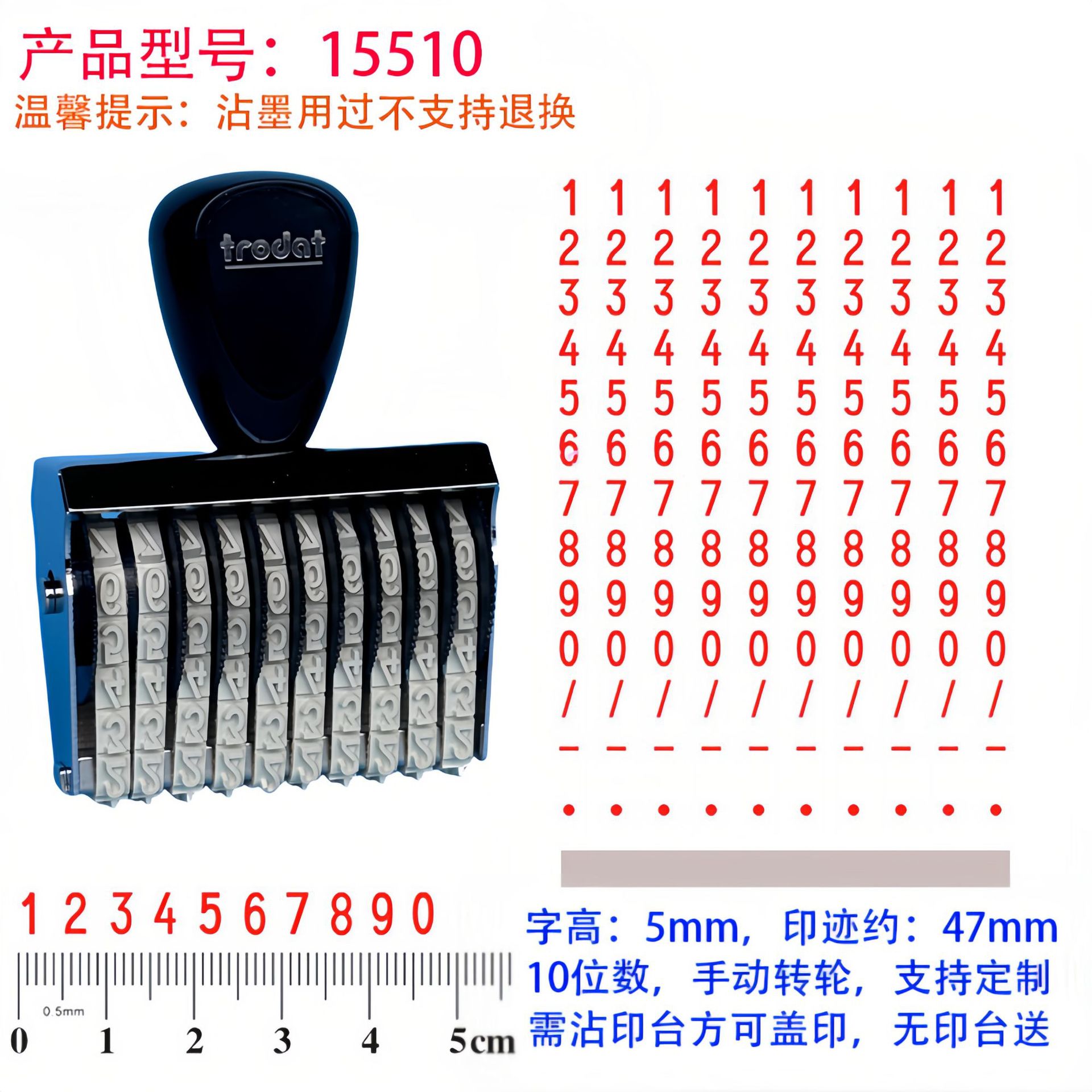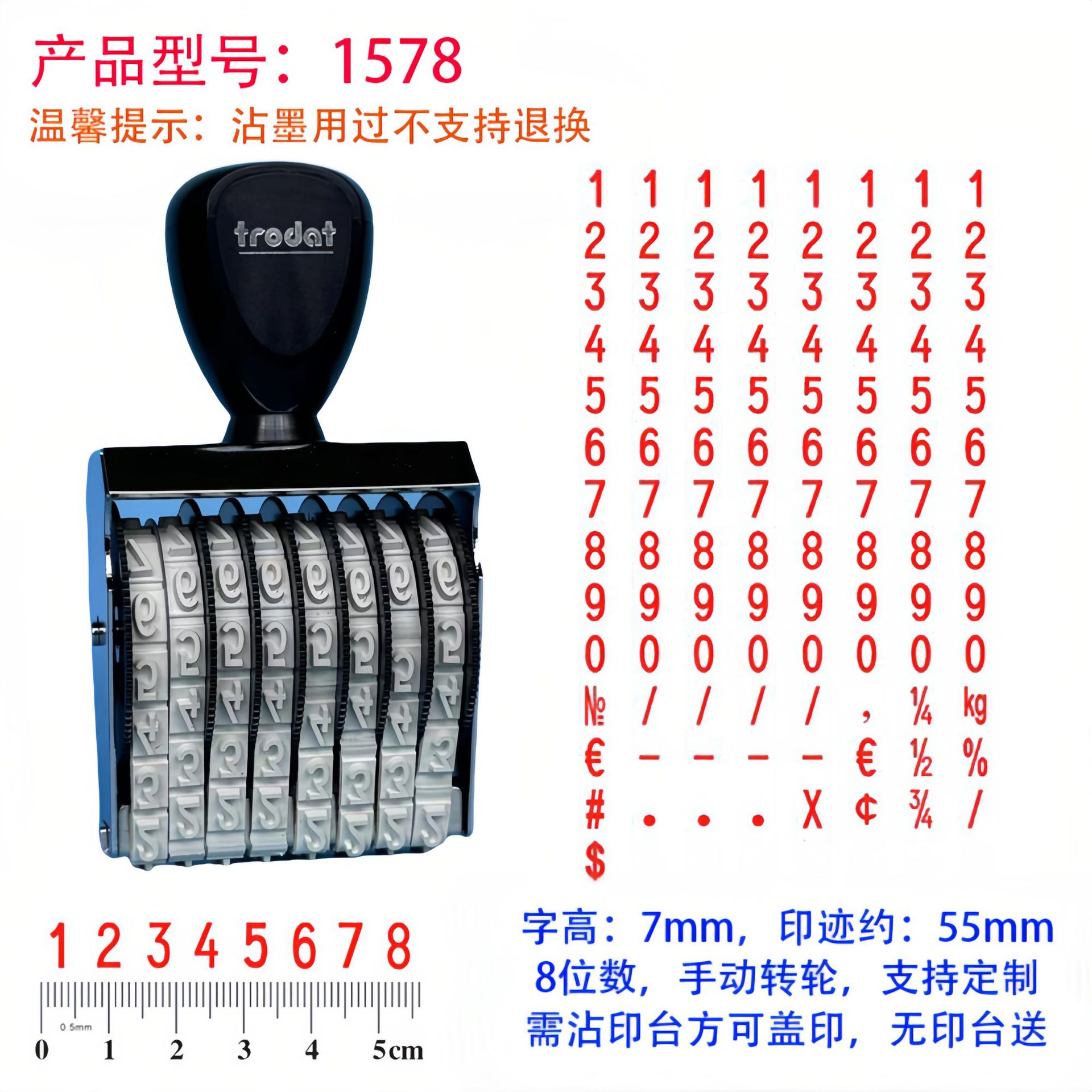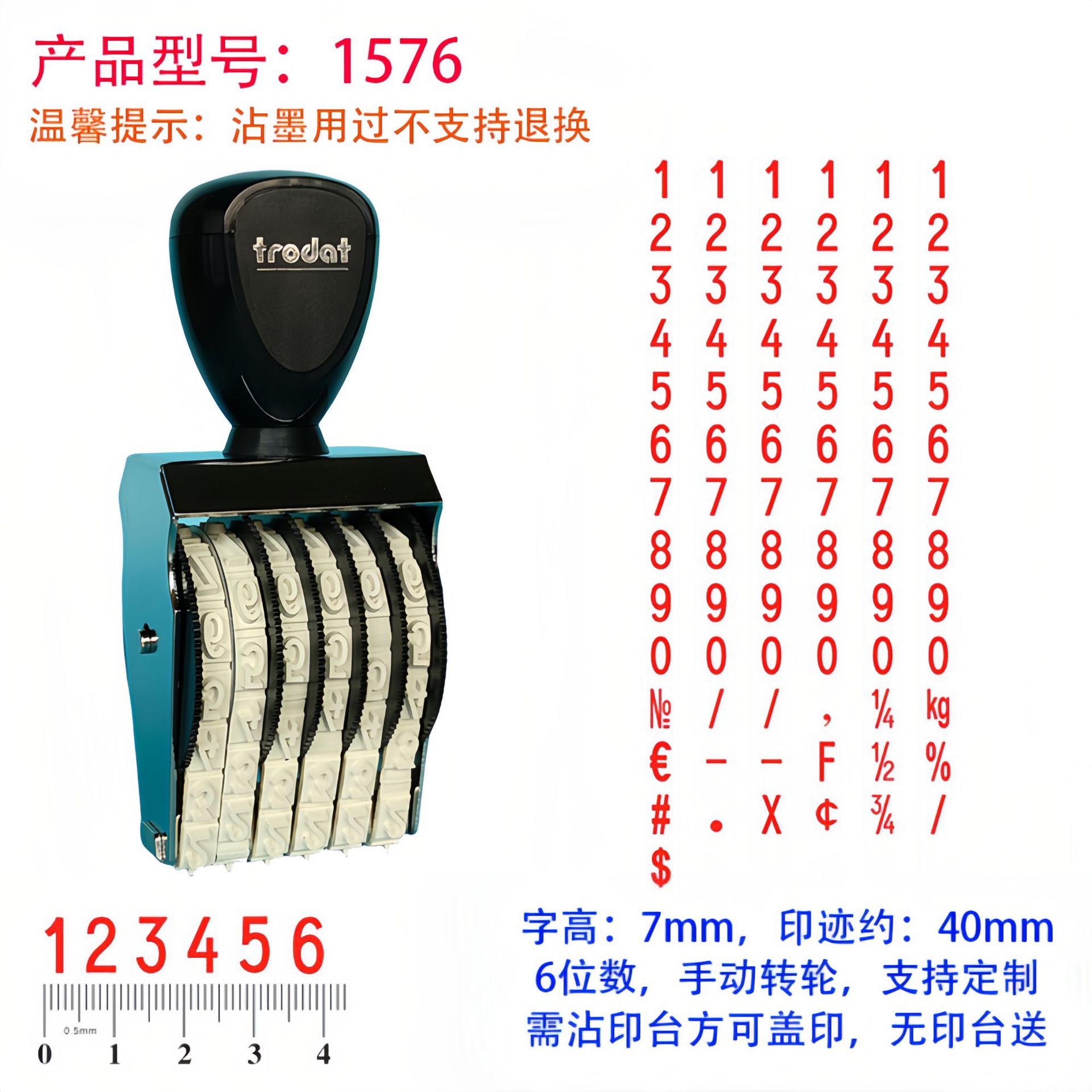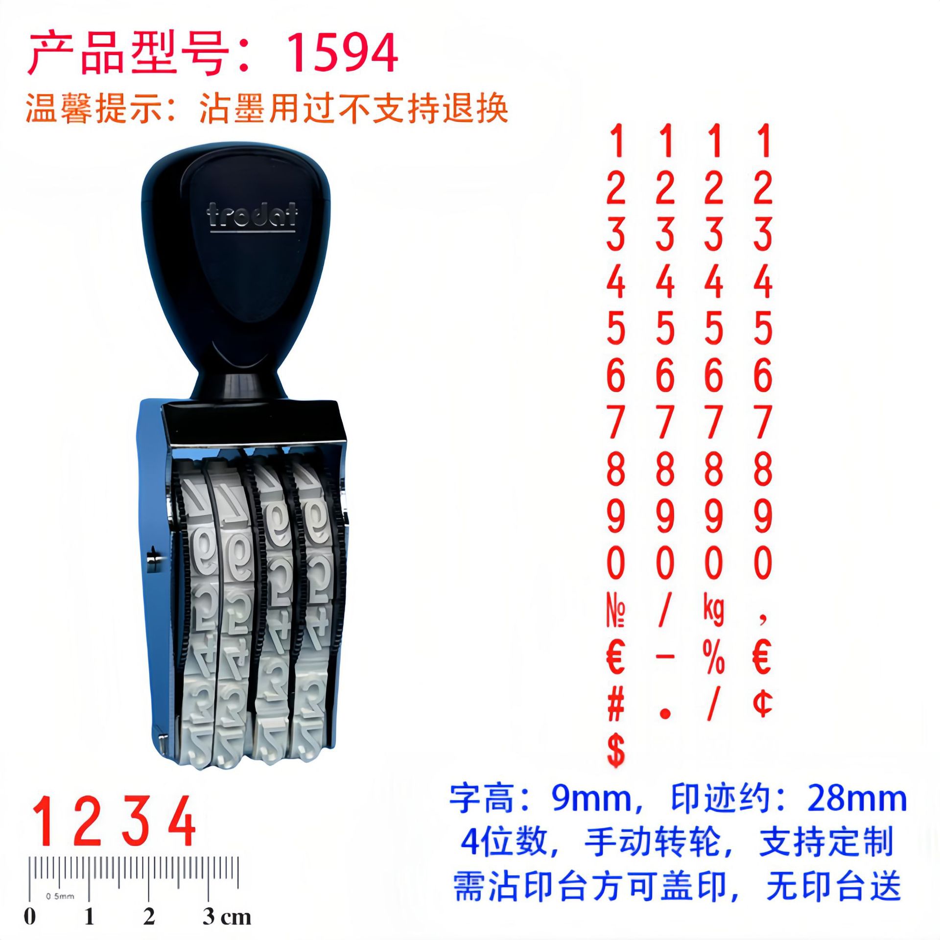 说明:  印章需手动调节转动,非自动跳号,需沾印台方可使用,此链接不含印台和印油,有需要印台和印油的请与客服联系