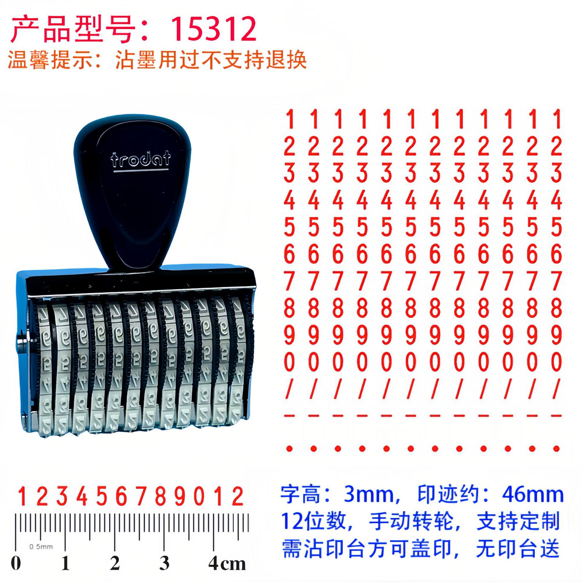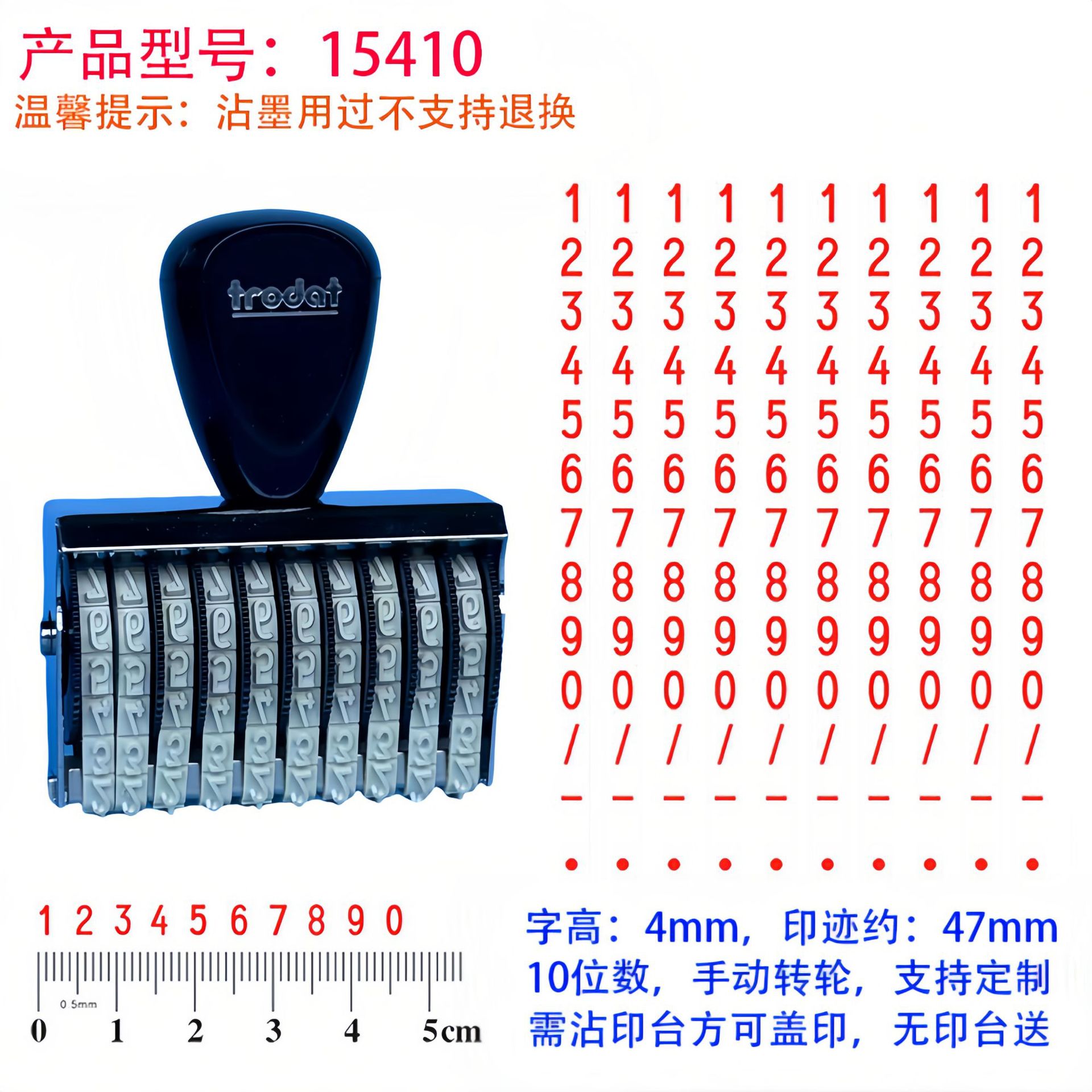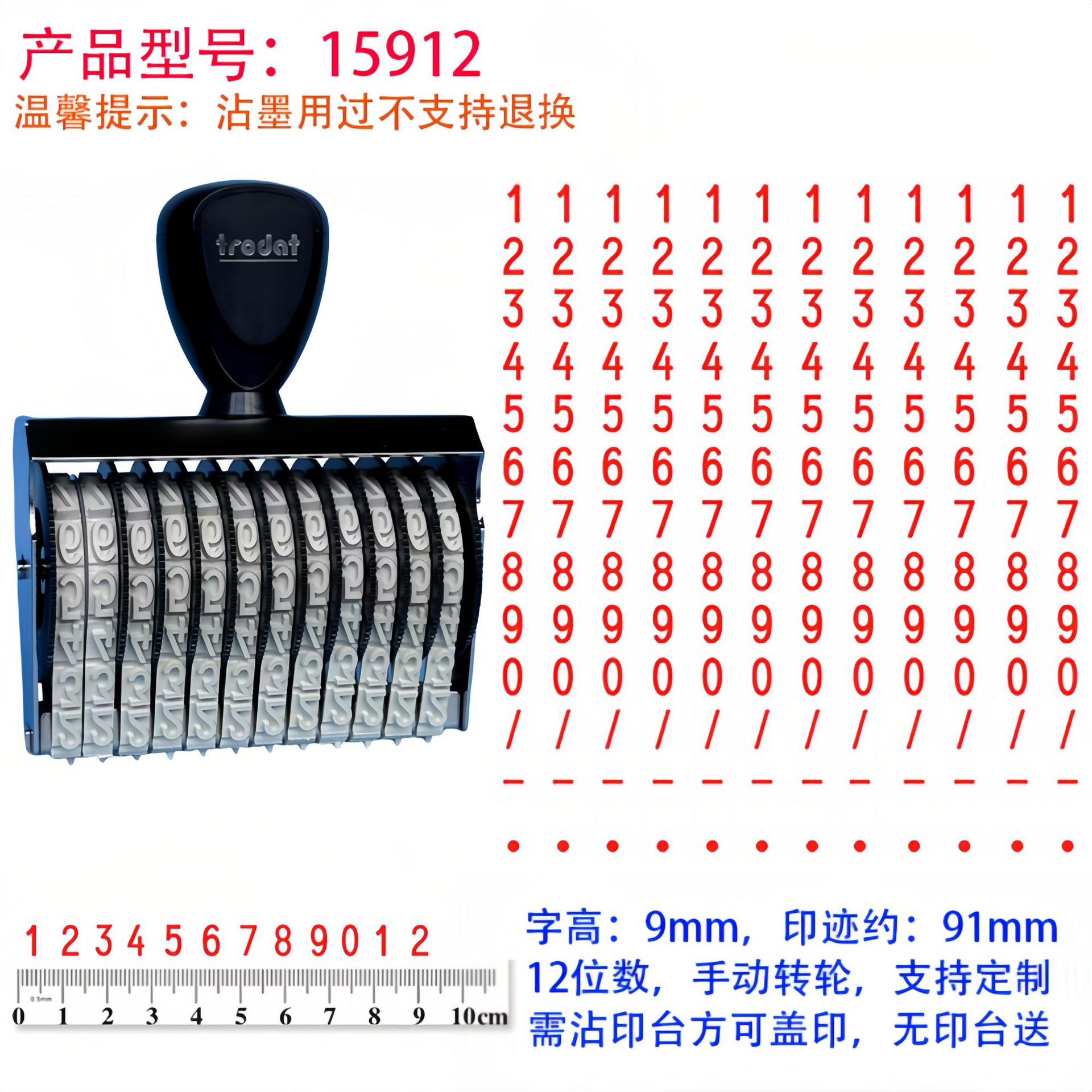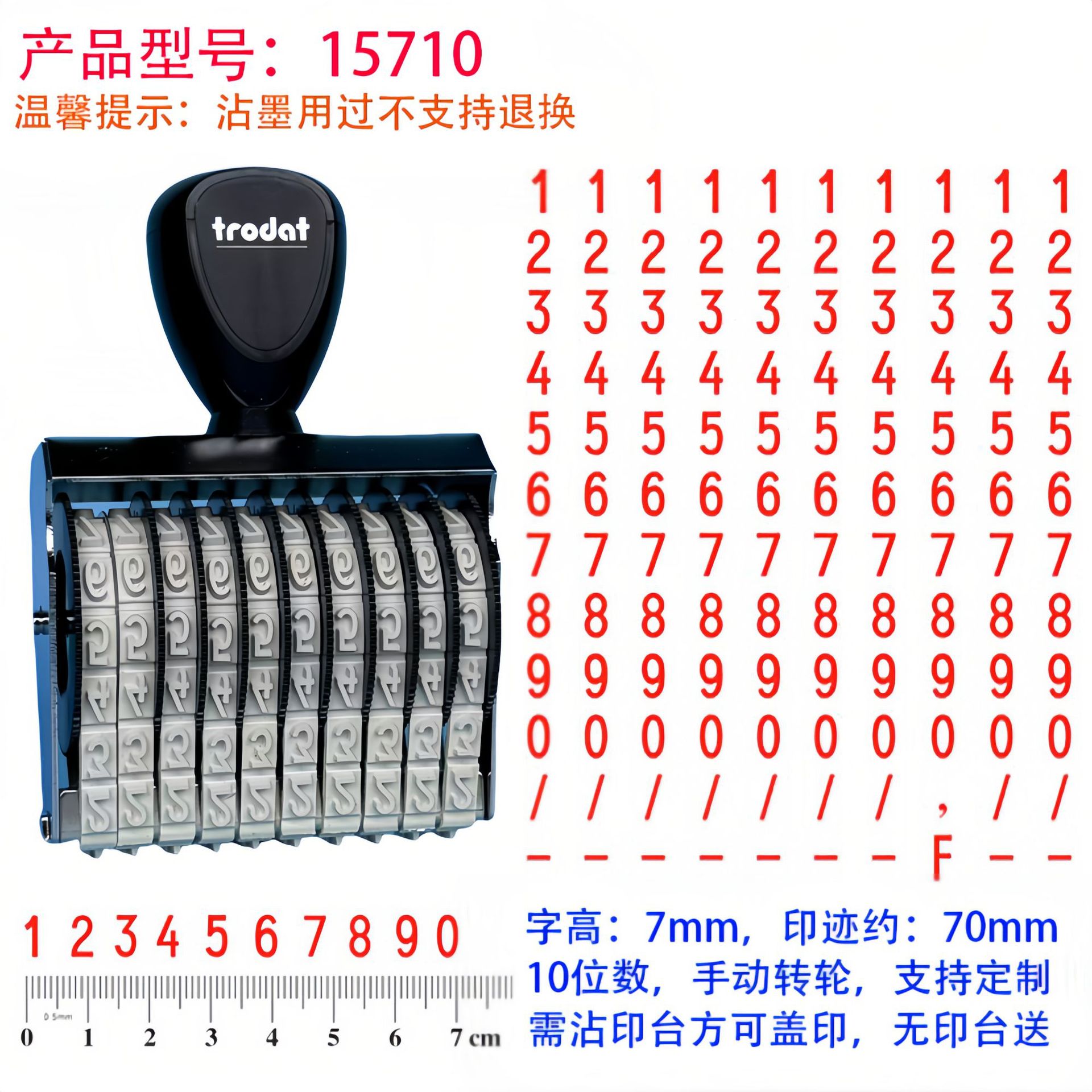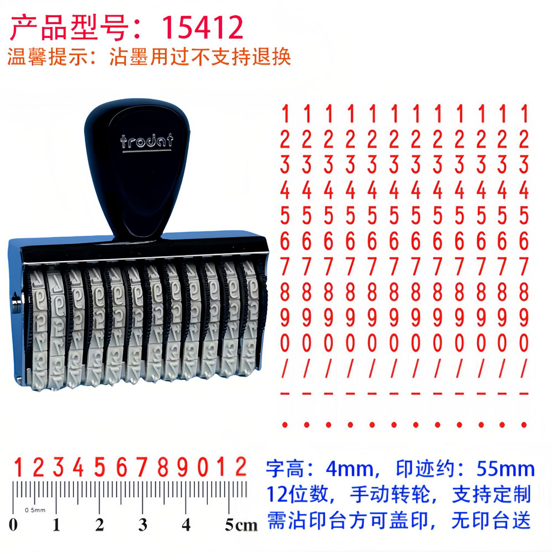 说明:  印章需手动调节转动,非自动跳号,需沾印台方可使用,此链接不含印台和印油,有需要印台和印油的请与客服联系