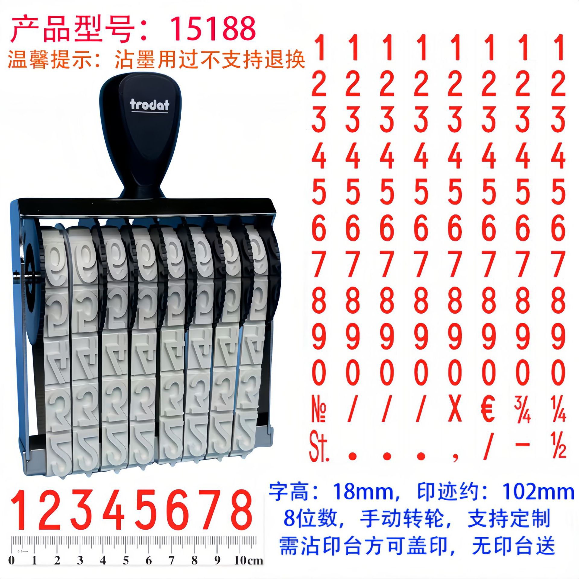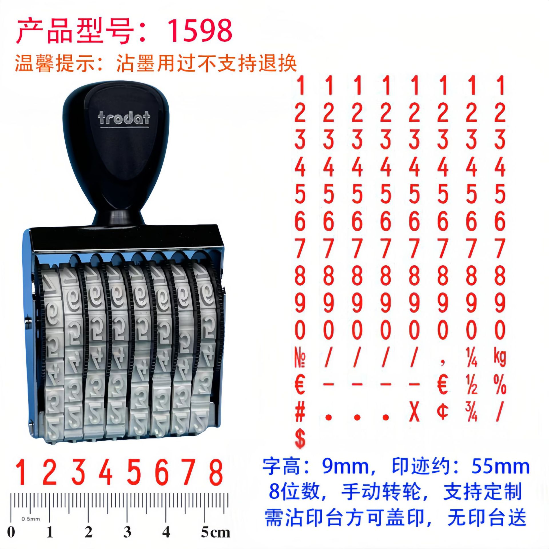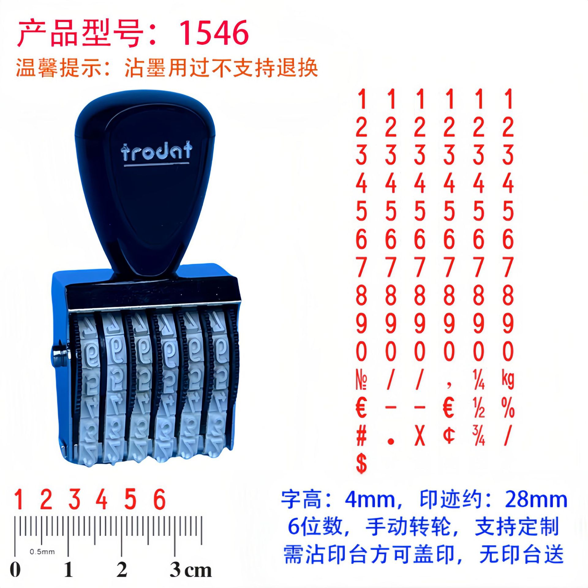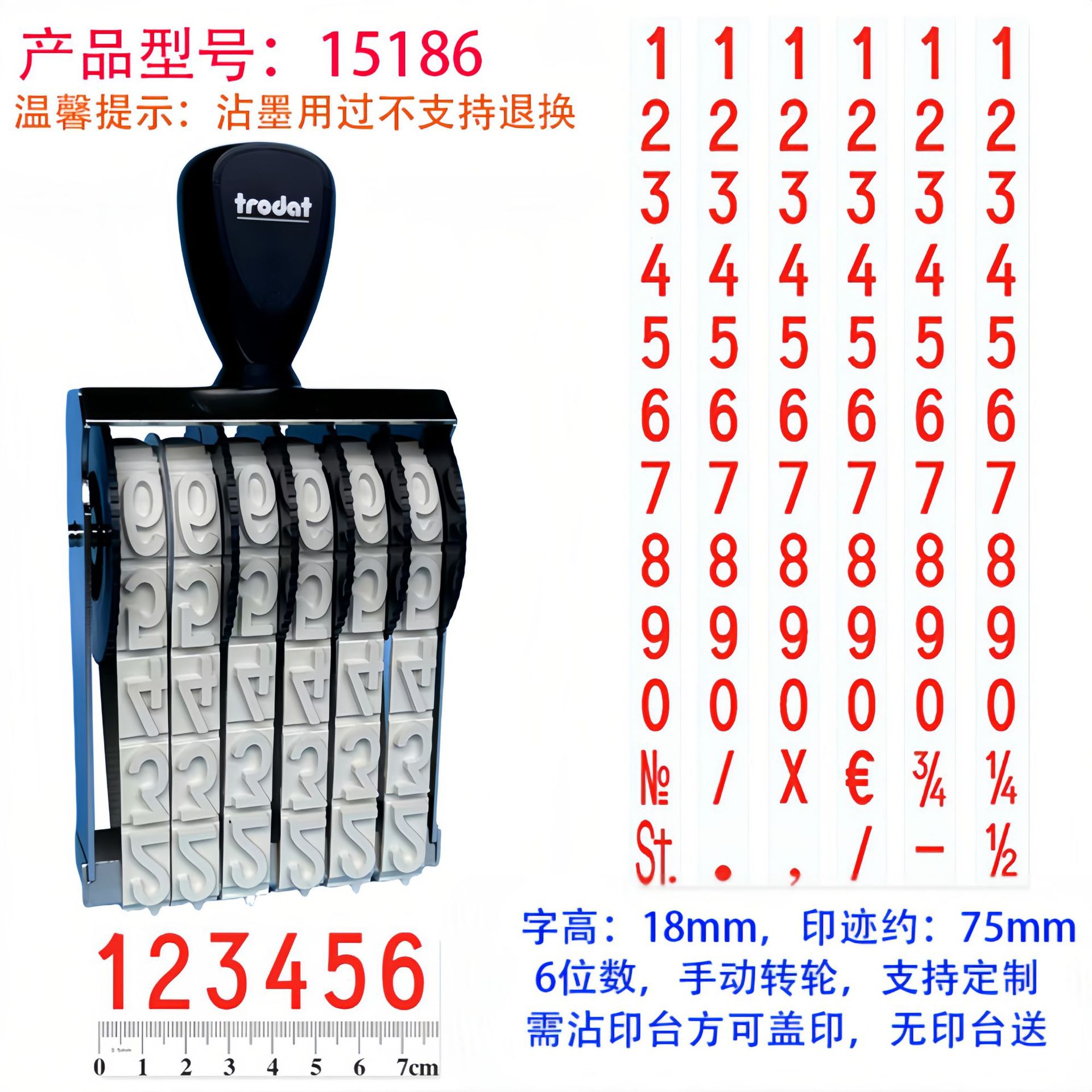 说明:  印章需手动调节转动,非自动跳号,需沾印台方可使用,此链接不含印台和印油,有需要印台和印油的请与客服联系