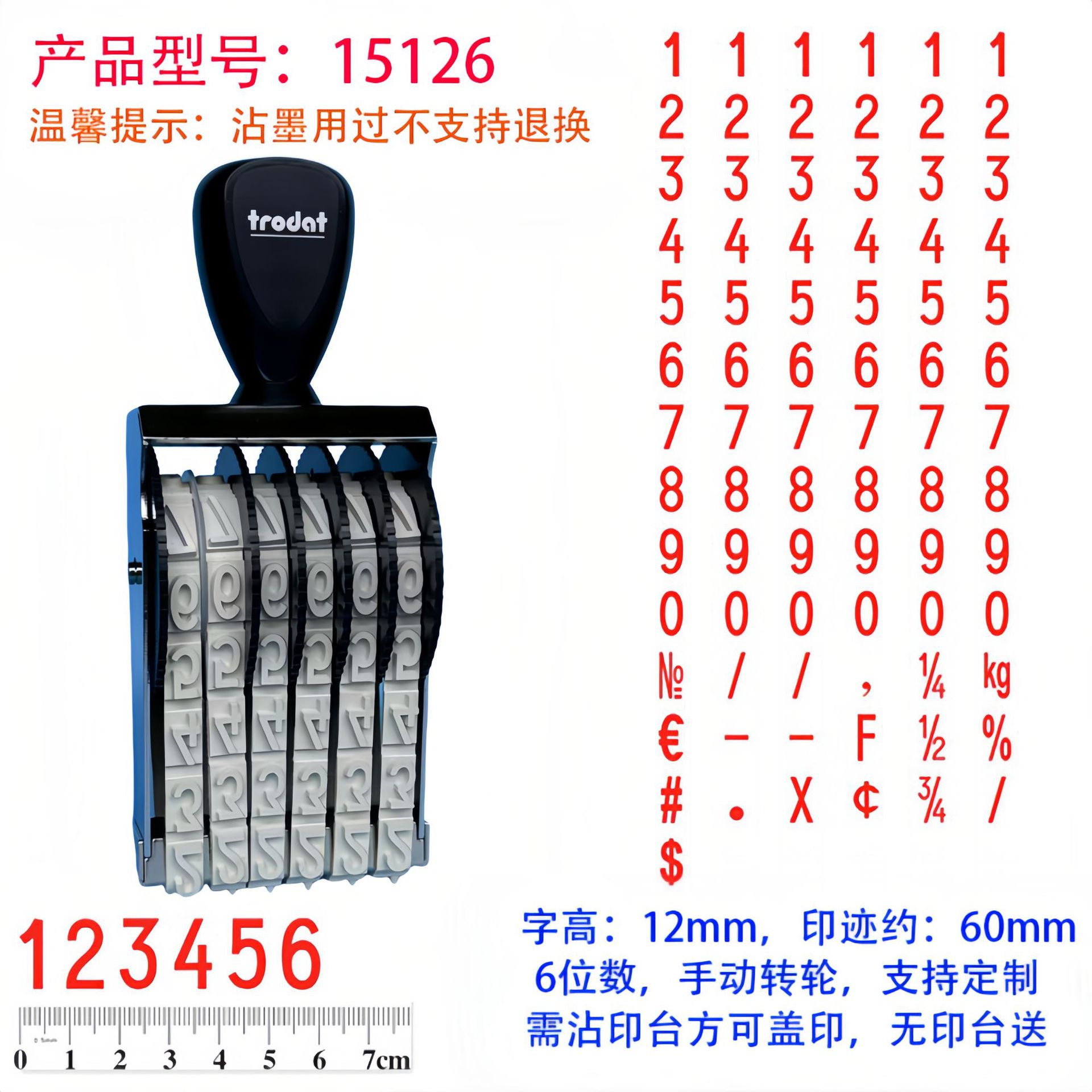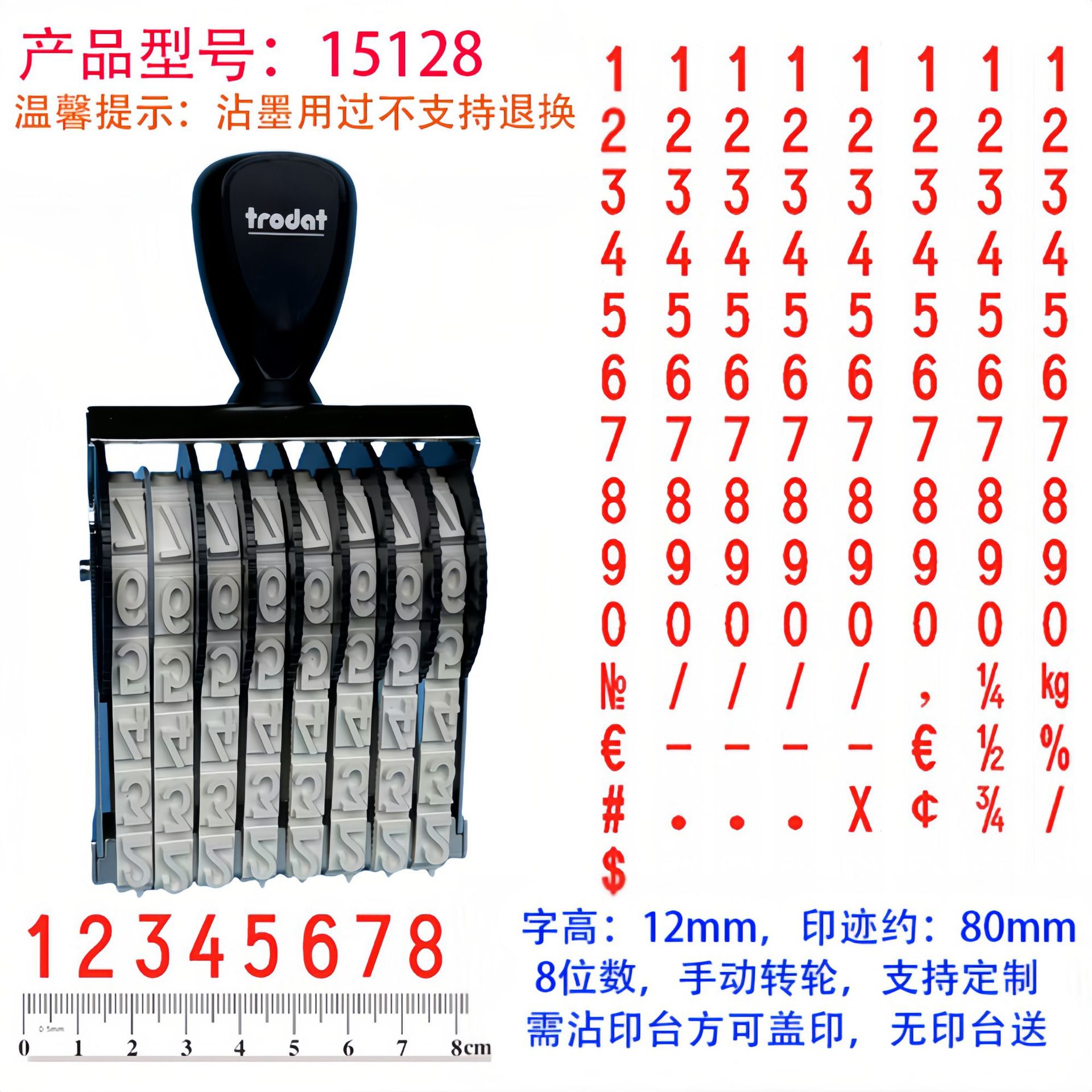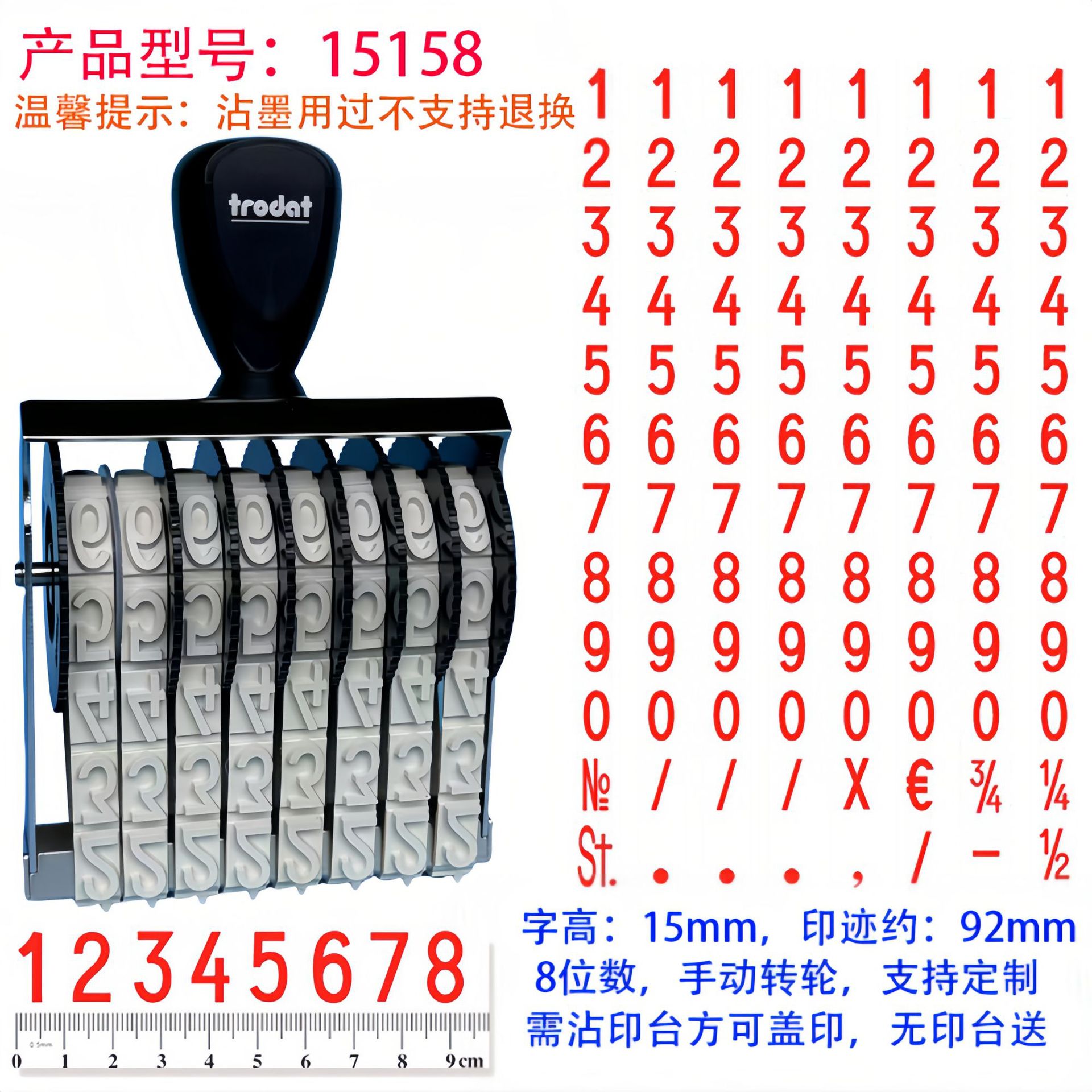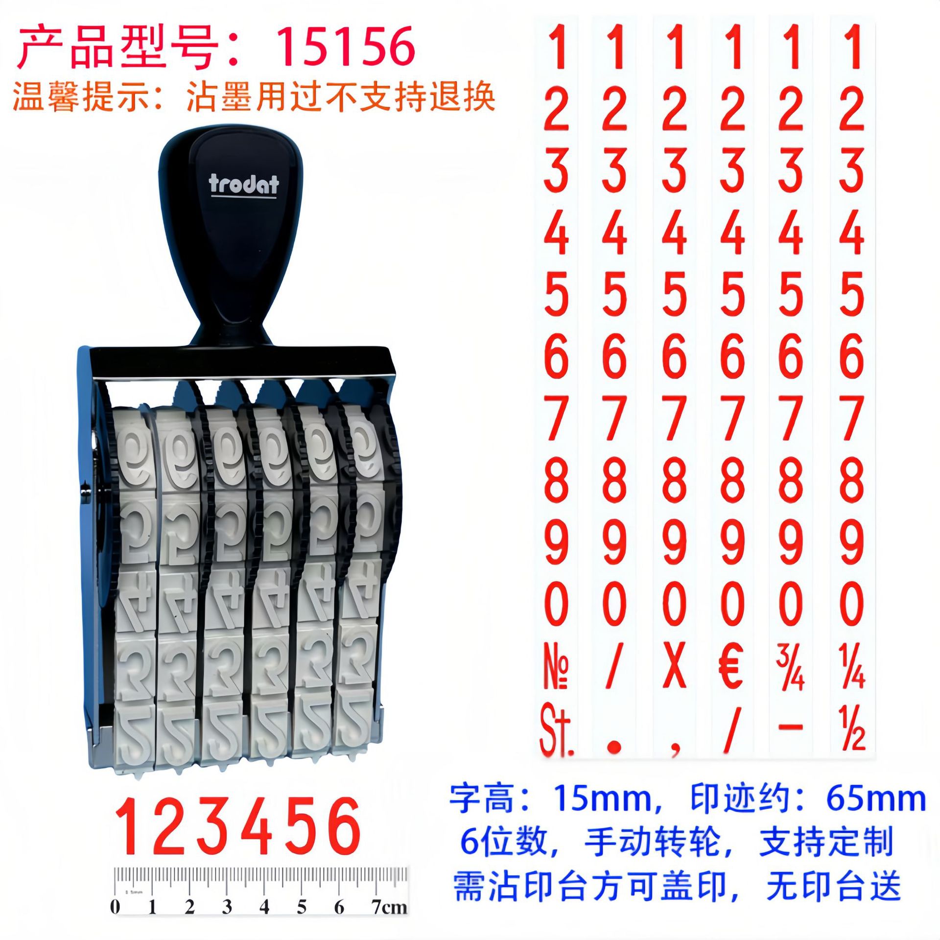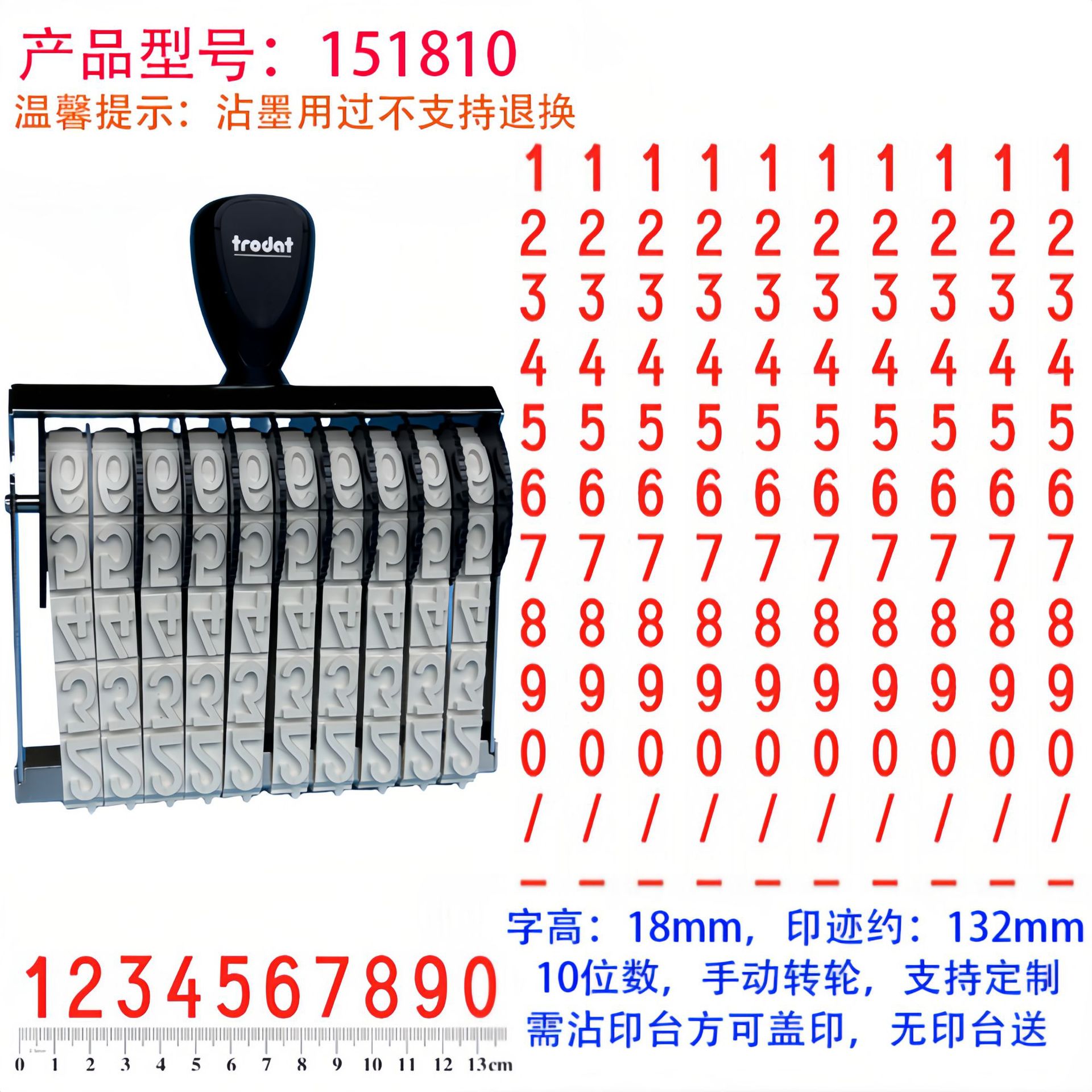 说明:  印章需手动调节转动,非自动跳号,需沾印台方可使用,此链接不含印台和印油,有需要印台和印油的请与客服联系