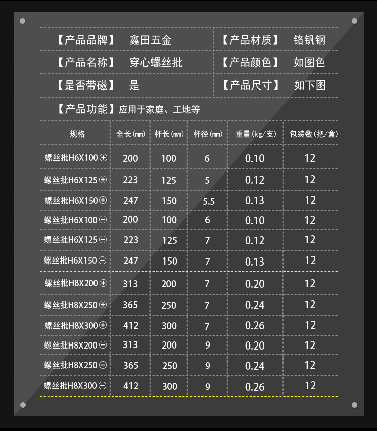 Xtian 스크루 드라이버 십자 모양의 하트 피어싱 배치는 강한 자기 스크루 드라이버 NO871 스크루 드라이버 홈 치수를 노크 할 수 있습니다스토어 가기