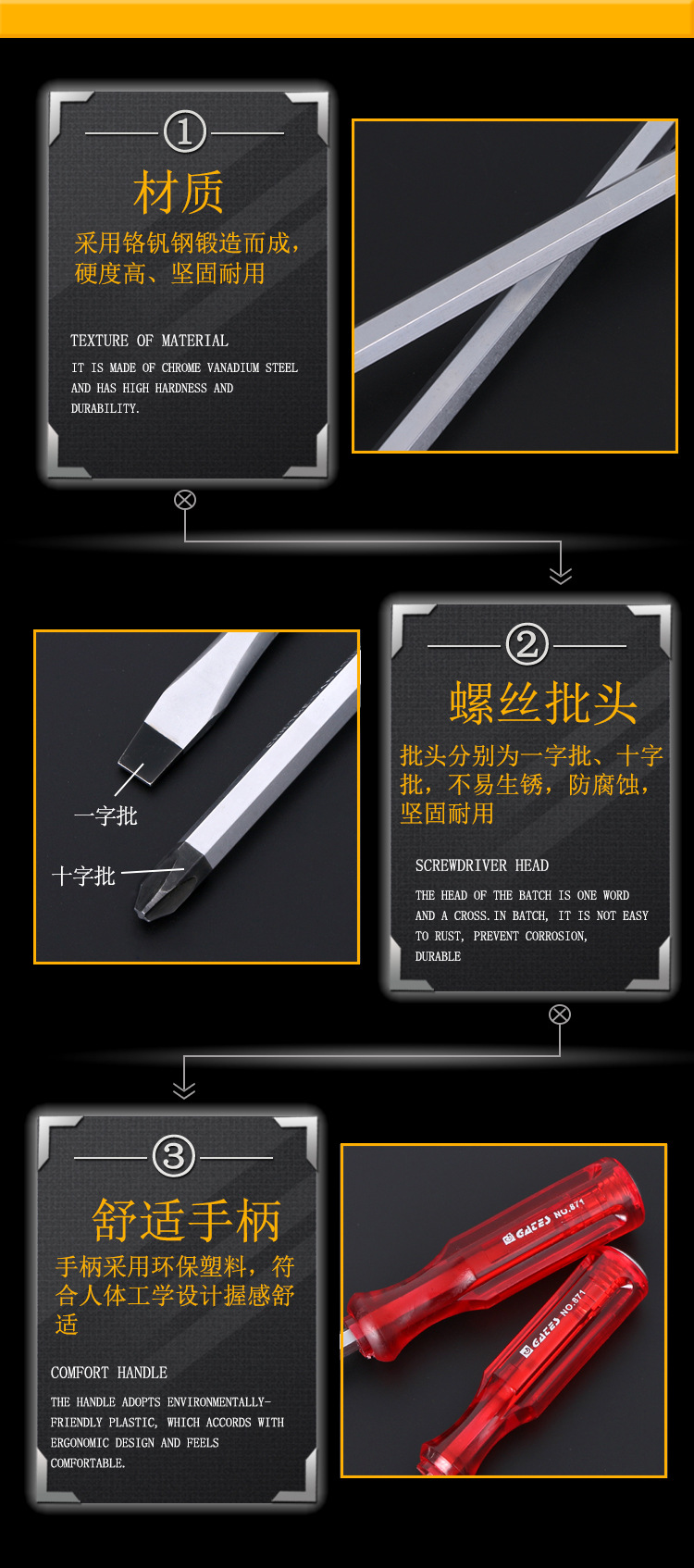 Xtian 스크루 드라이버 십자 모양의 하트 피어싱 배치는 강한 자기 스크루 드라이버 NO871 스크루 드라이버 홈 치수를 노크 할 수 있습니다