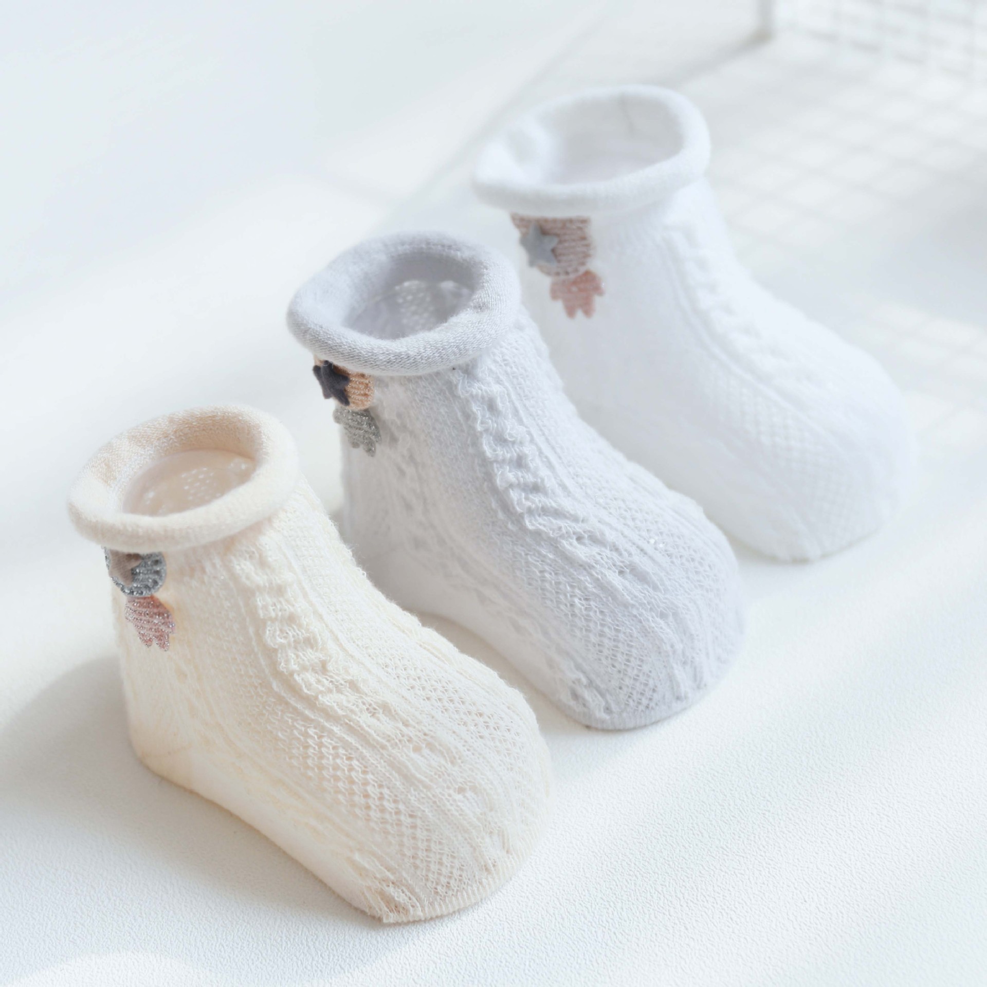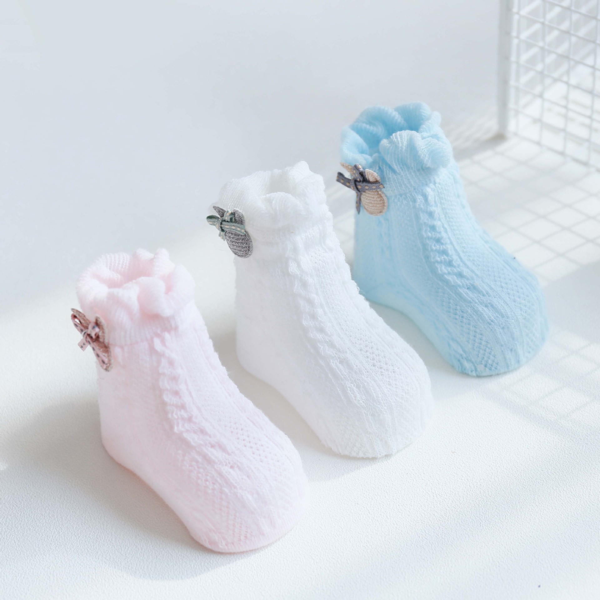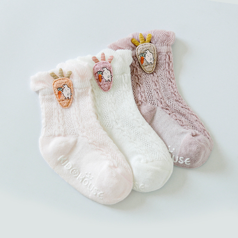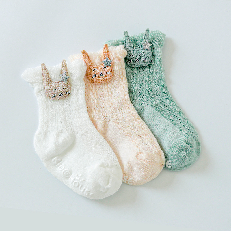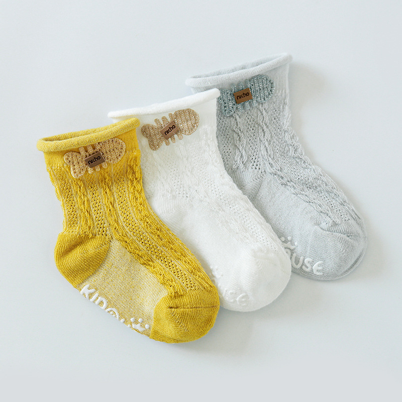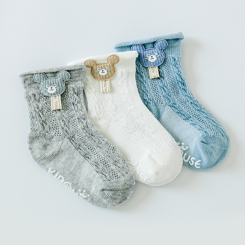 봄과 여름 얇은 아기 양말 통기성 메쉬 튜브 양말 아기 미끄럼 방지 바닥 양말 만화 액세서리 인형 양말스토어 가기