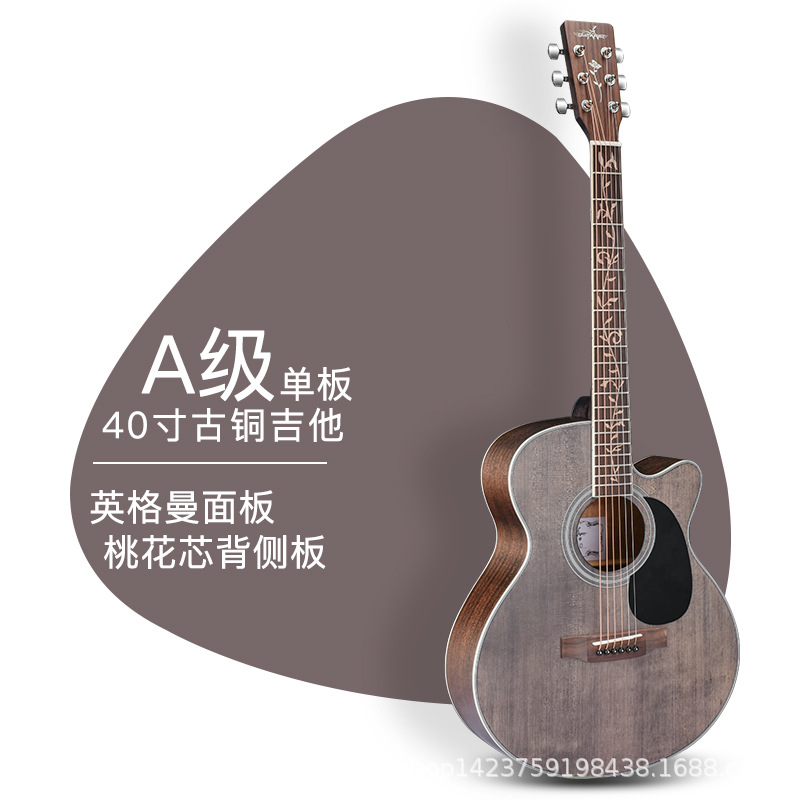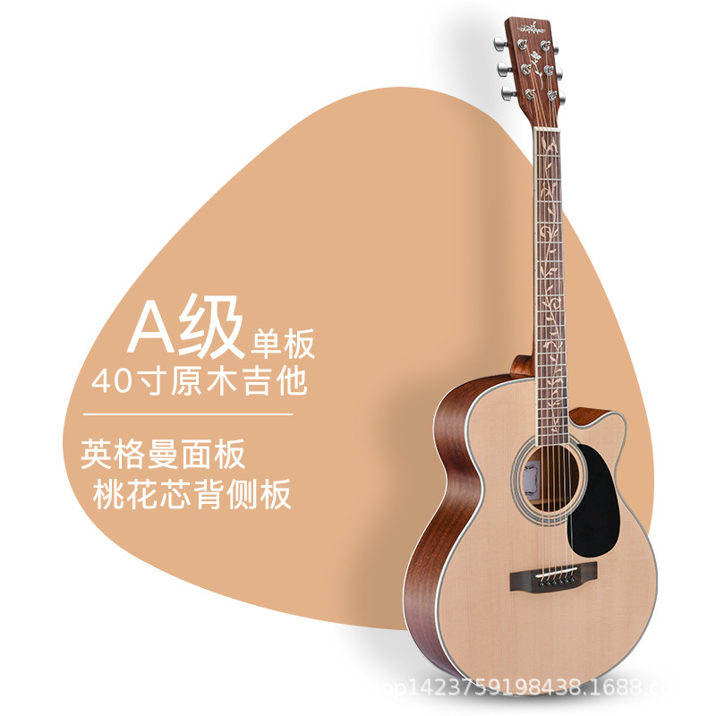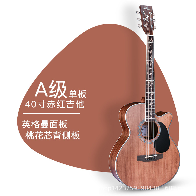기타리스트 기타 40 인치 어쿠스틱 기타 베니어 가문비 나무 복숭아 꽃 심장 누락 각도 성능