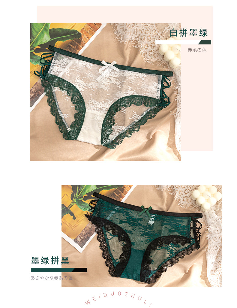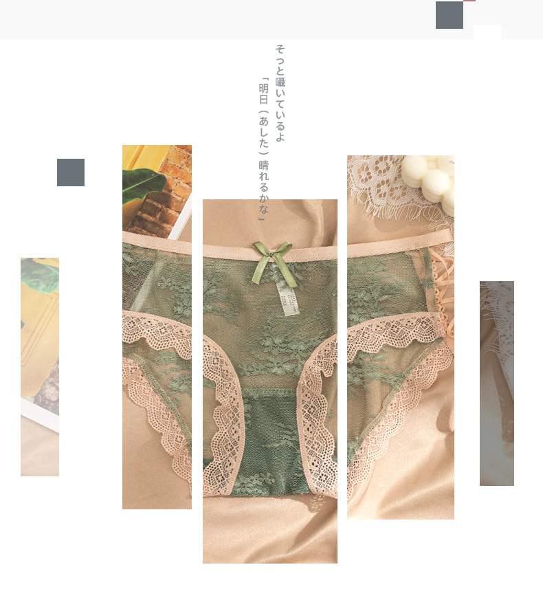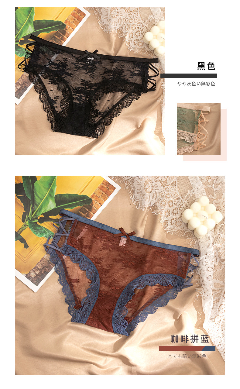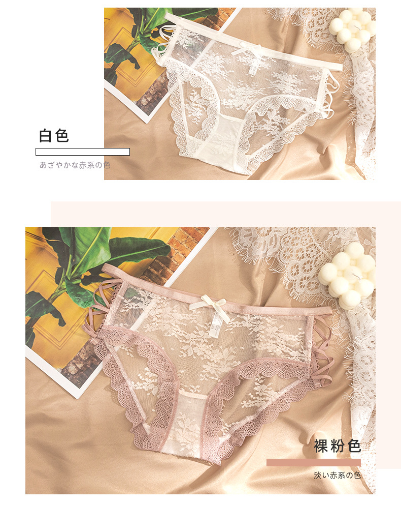 섹시한 낮은 허리 레이스 반투명 팬티 일본식 달콤한 나비 바지 바닥 가랑이 면 소녀의 순수한 욕망 팬티