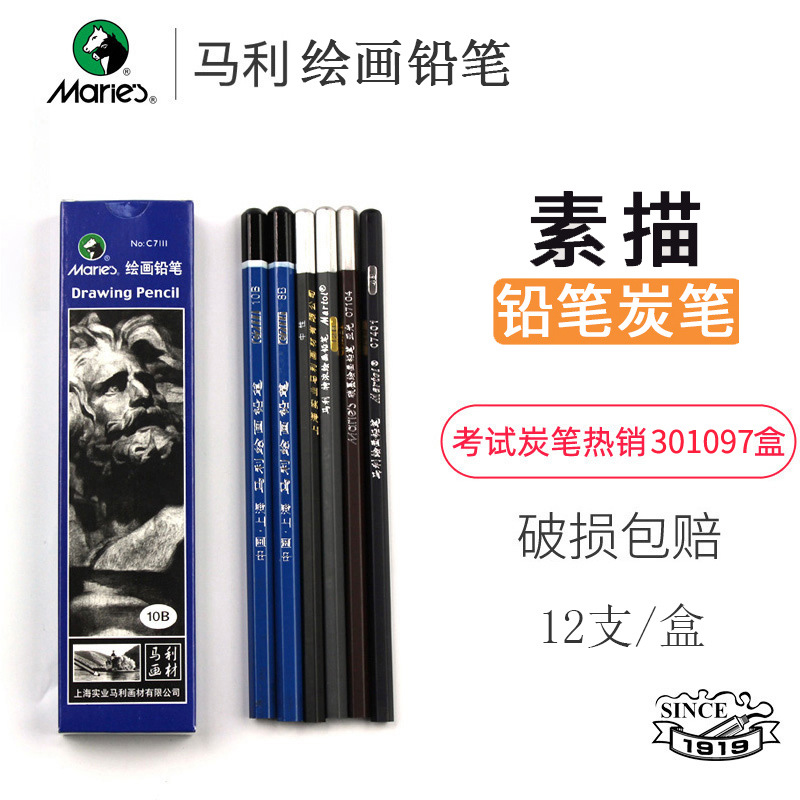 말리 숯 펜 미술 학생을위한 스케치 연필 소프트 미디엄 하드 소프트 카본 페인팅 초보자 초강력 카본 펜 12B14B스토어 가기