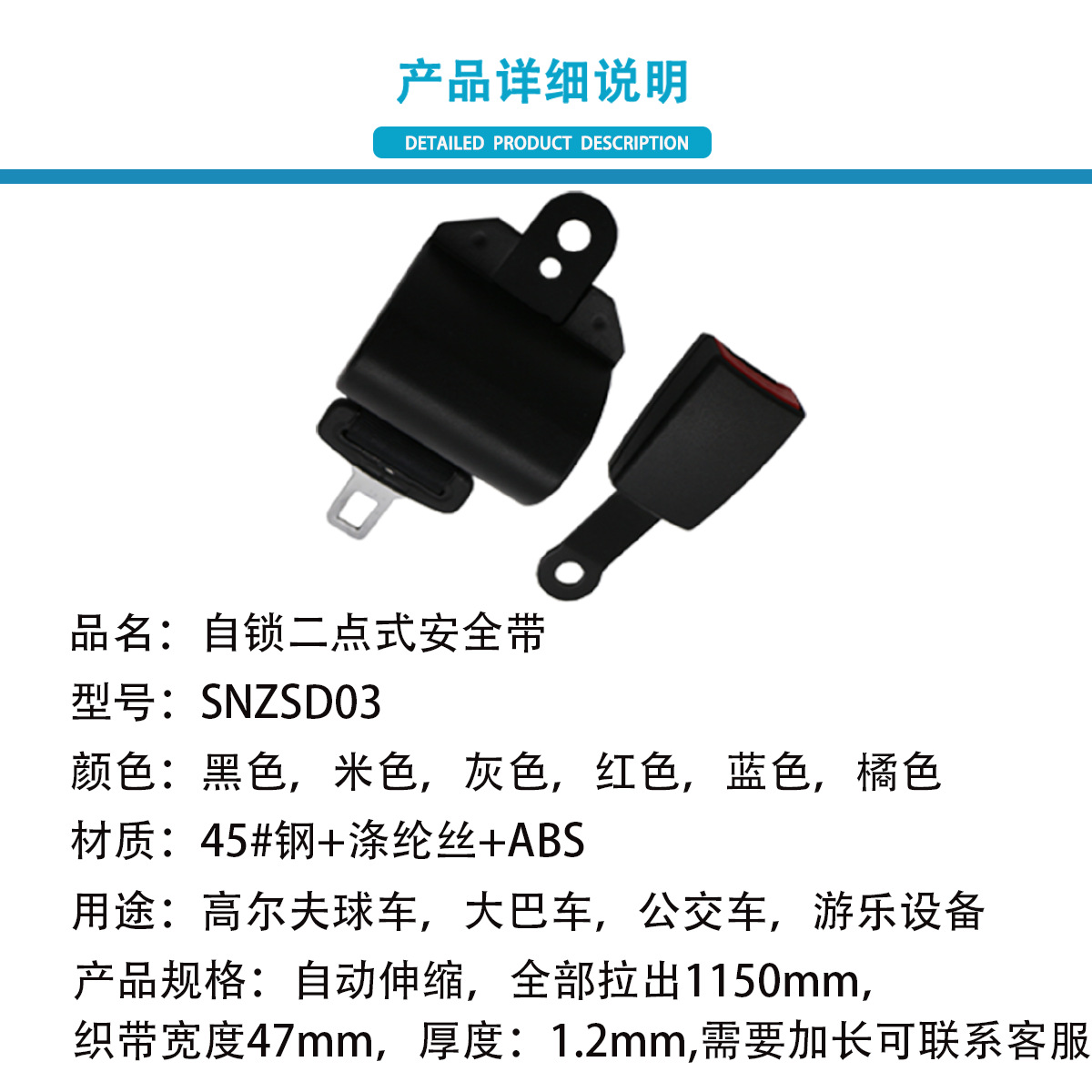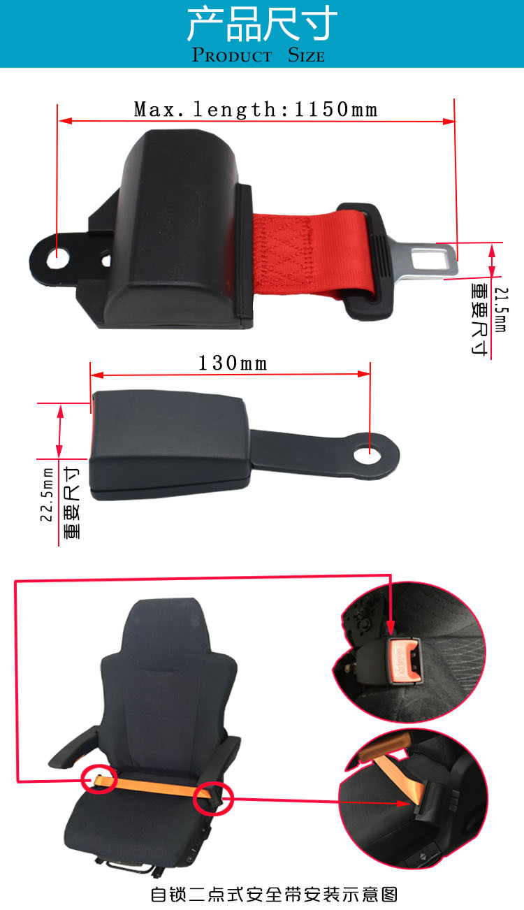 자동차용 2점식 안전벨트, 지게차, 버스, 관광차, 자동차용 자동 접이식 시트 안전벨트