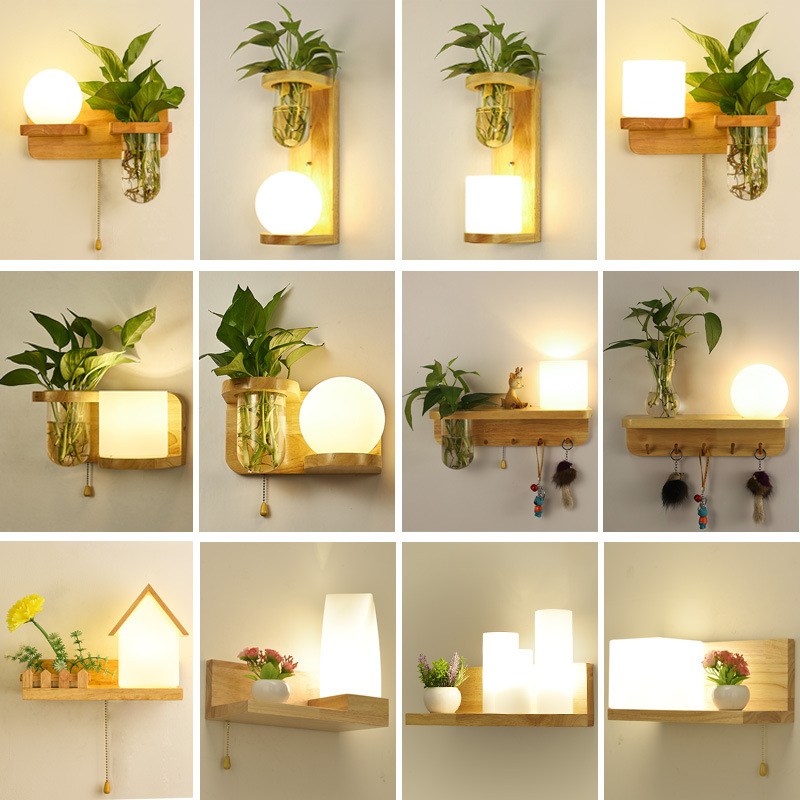 통나무 벽 램프 침실 간단한 현대 창조적 인 북유럽 거실 따뜻한 계단 발코니 램프 호텔 식물 벽 램프스토어 가기