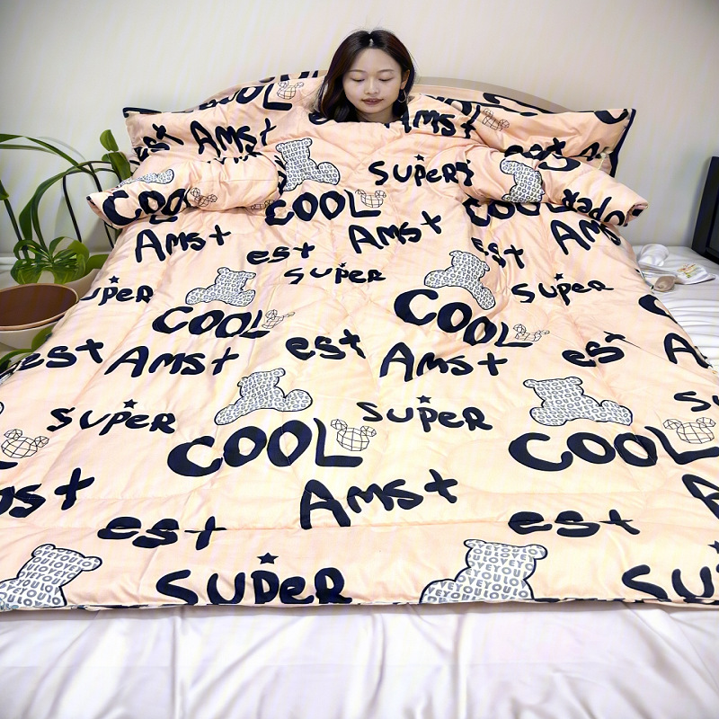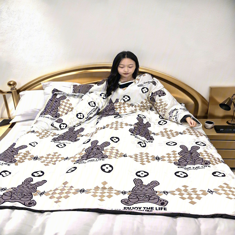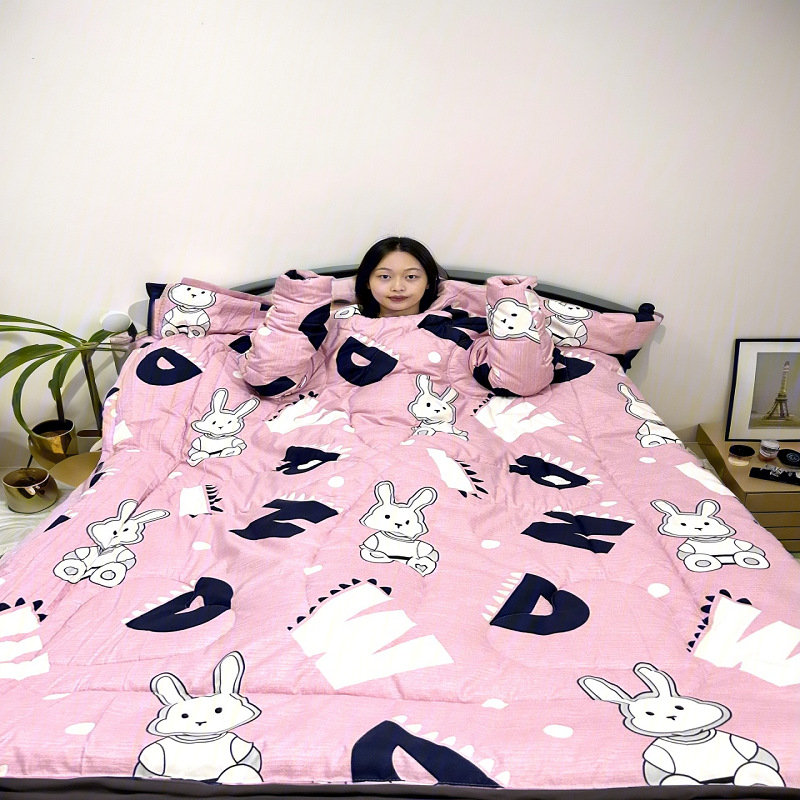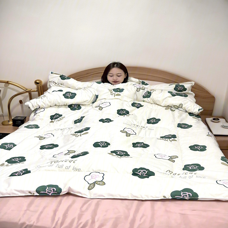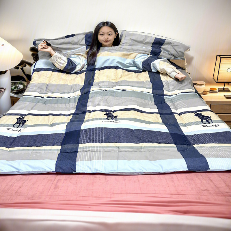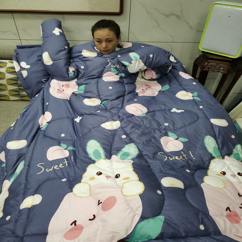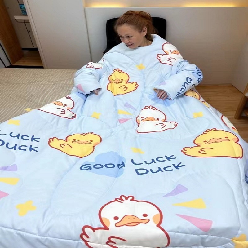 东嘉龙电子商务有限公司是一家集批发零售,家纺,床上用品等自主研发生产设计一条龙服务的公司。本公司的研发团队根据人们的生活需求研发了一系列深入生活的产品,其中包括懒人被,多功能懒人被,幼儿园带袖防踢被,儿童防踢被 车载旅行被,老人护肩被等,升级版款车载旅行被子等产品获得专利证书。 该款为儿童防踢被它是我们公司的专利产品之一 A关于产品:本产品为水洗棉面料,