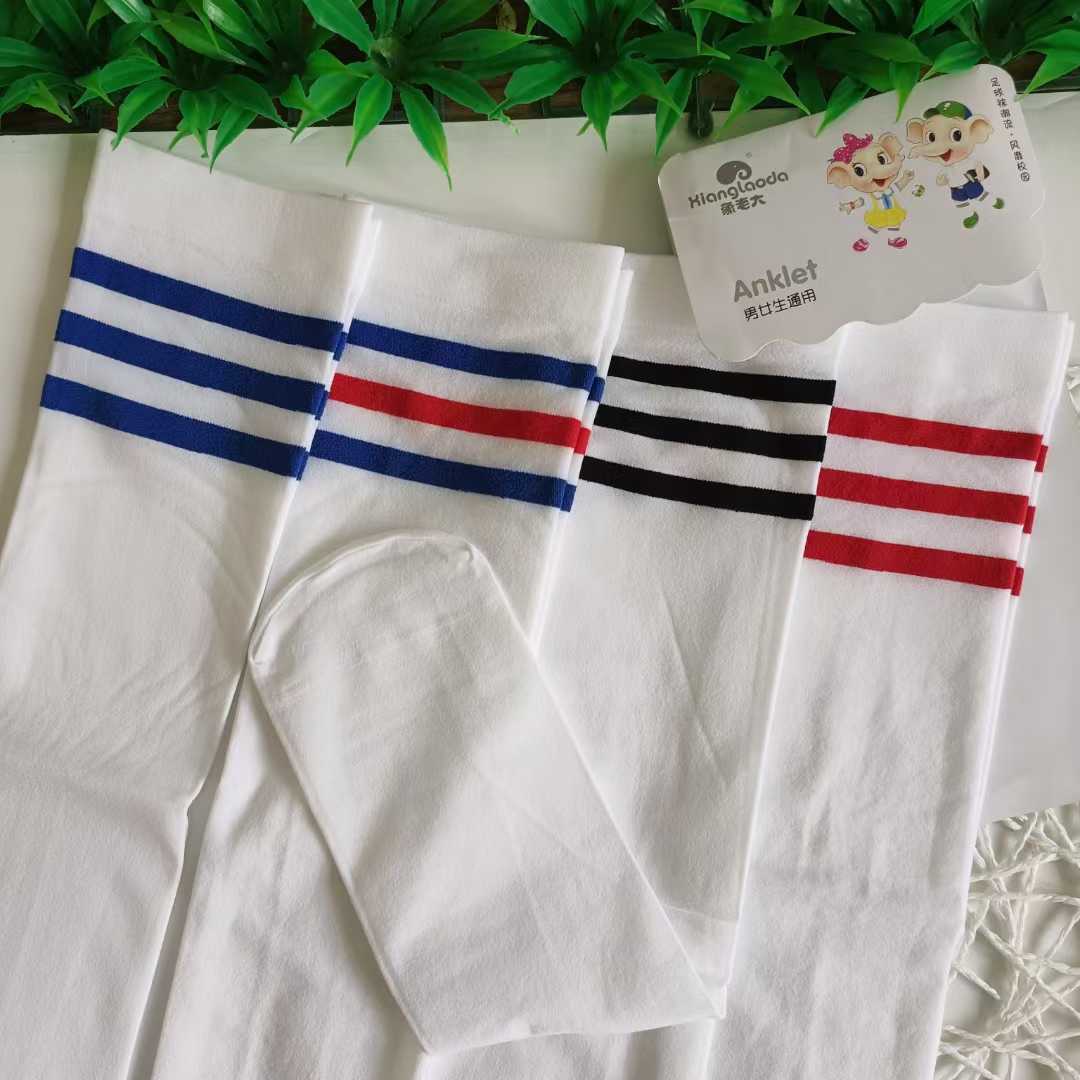 어린이 축구 양말 화이트 롱 튜브 코튼 양말 봄 여름 가을 3 바 학생 충격 양말 벨벳 댄스 양말