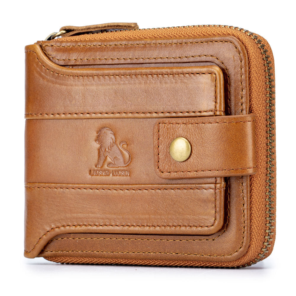 소가죽 남성 지갑 탑 레이어 소가죽 동전 지갑 정품 가죽 운전 면허증 가방 수평 멀티 카드 지갑 도난 방지 브러시스토어 가기