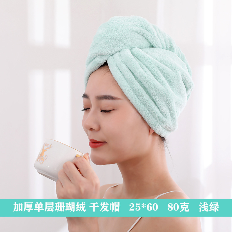 • 280 플랫 고밀도 산호 양털 샤워 캡 [라이트 그린]