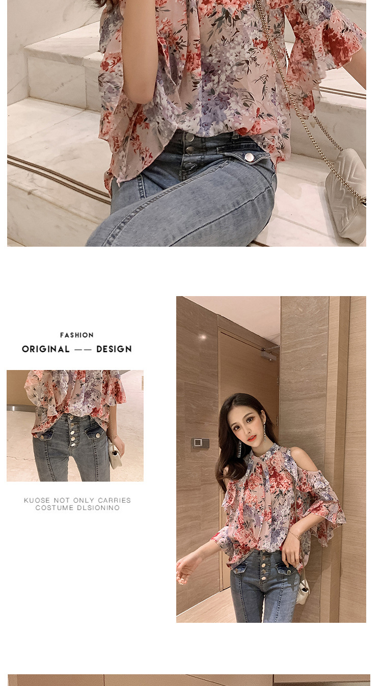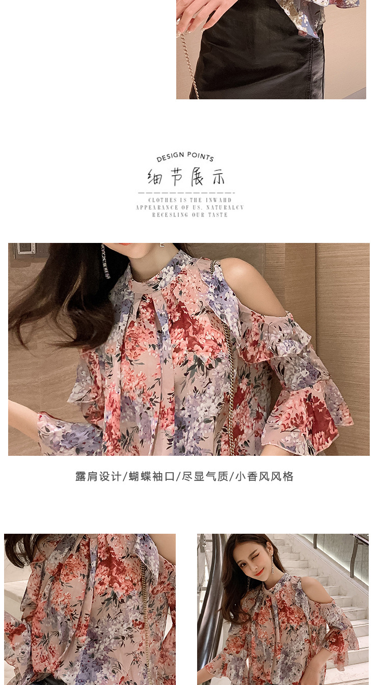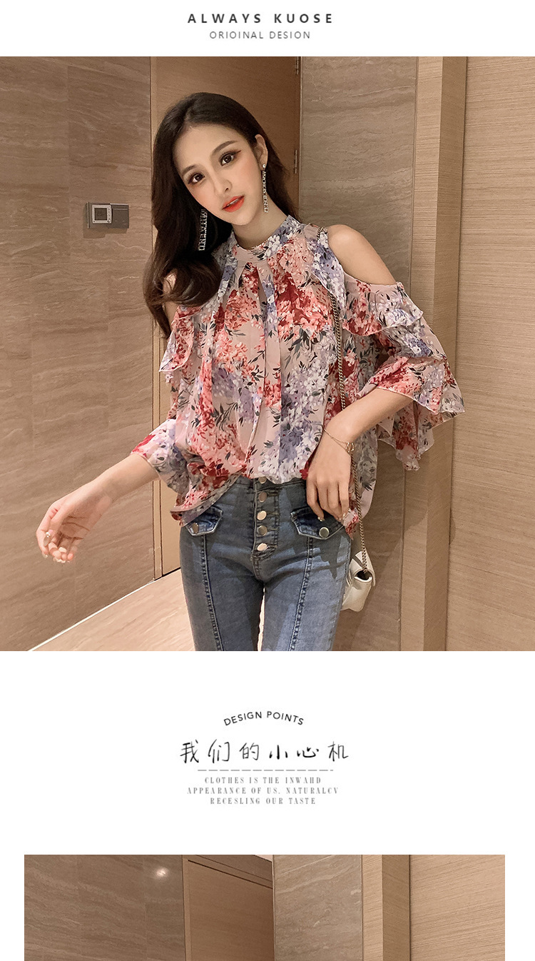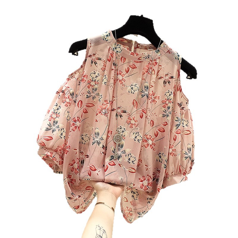 여성용 쉬폰 셔츠 2025 한국식 신작 여름 루즈한 반팔 오프 숄더 탑 꽃무늬 배를 덮는 셔츠스토어 가기