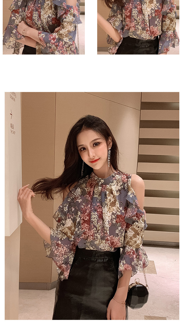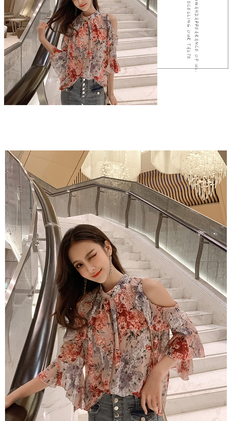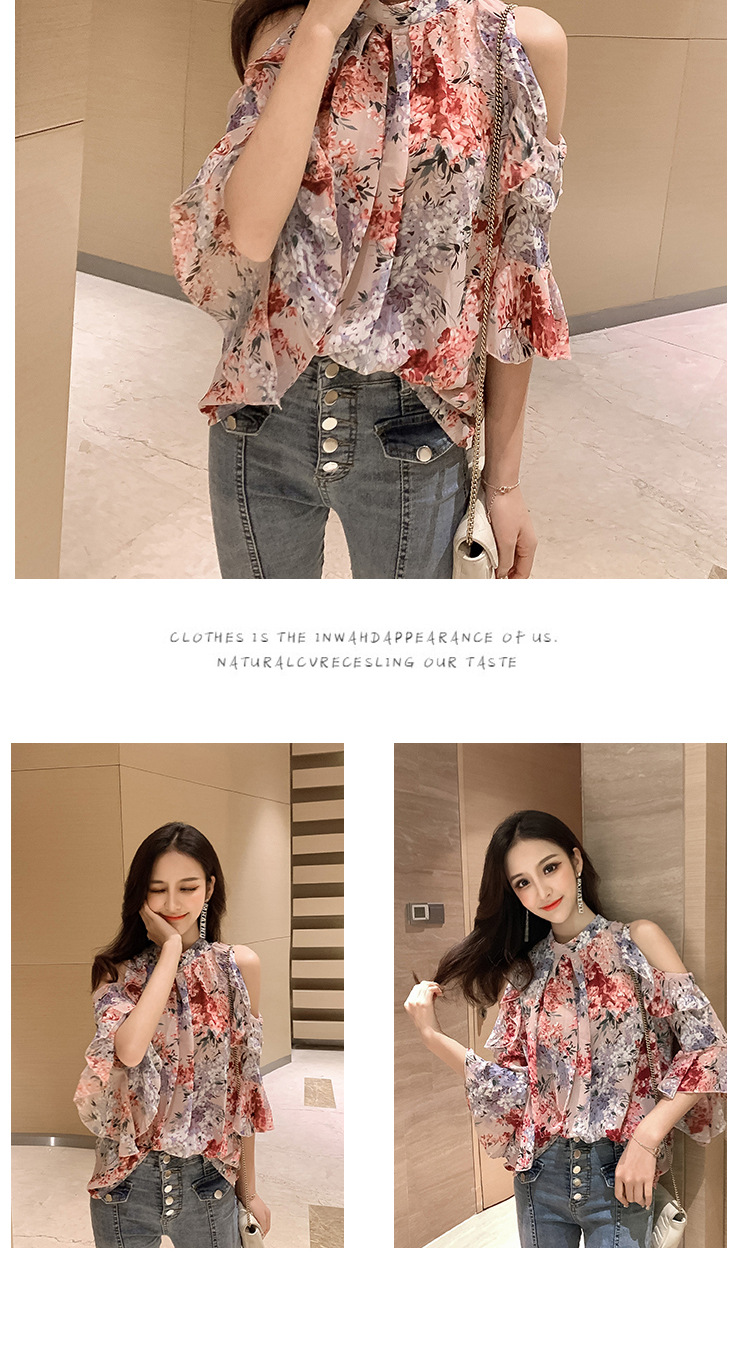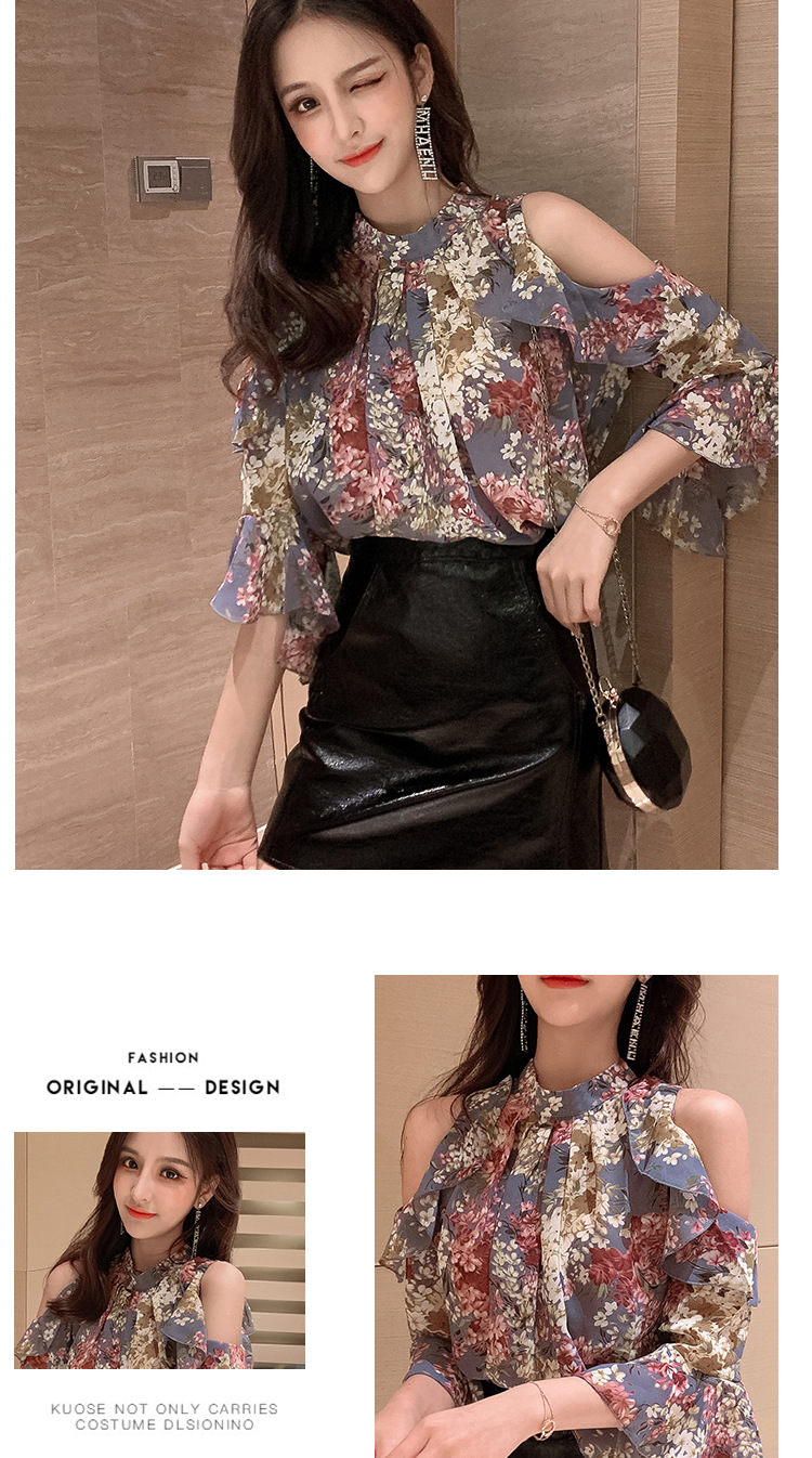 여성용 쉬폰 셔츠 2025 한국식 신작 여름 루즈한 반팔 오프 숄더 탑 꽃무늬 배를 덮는 셔츠스토어 가기
