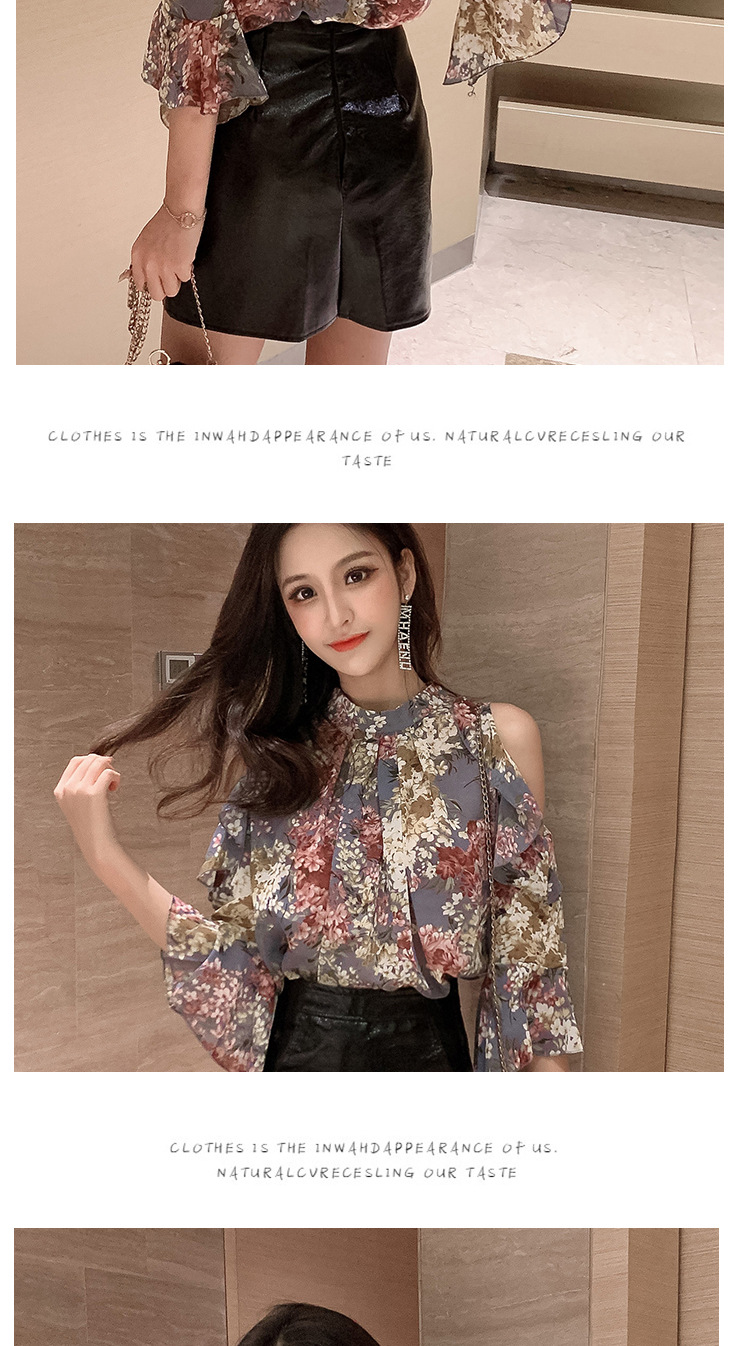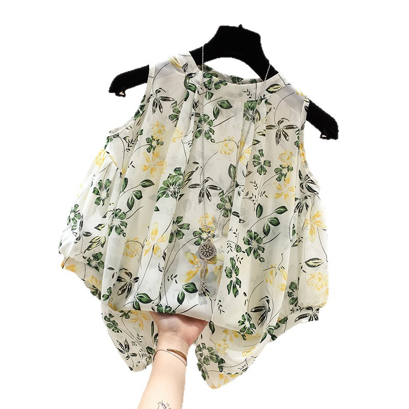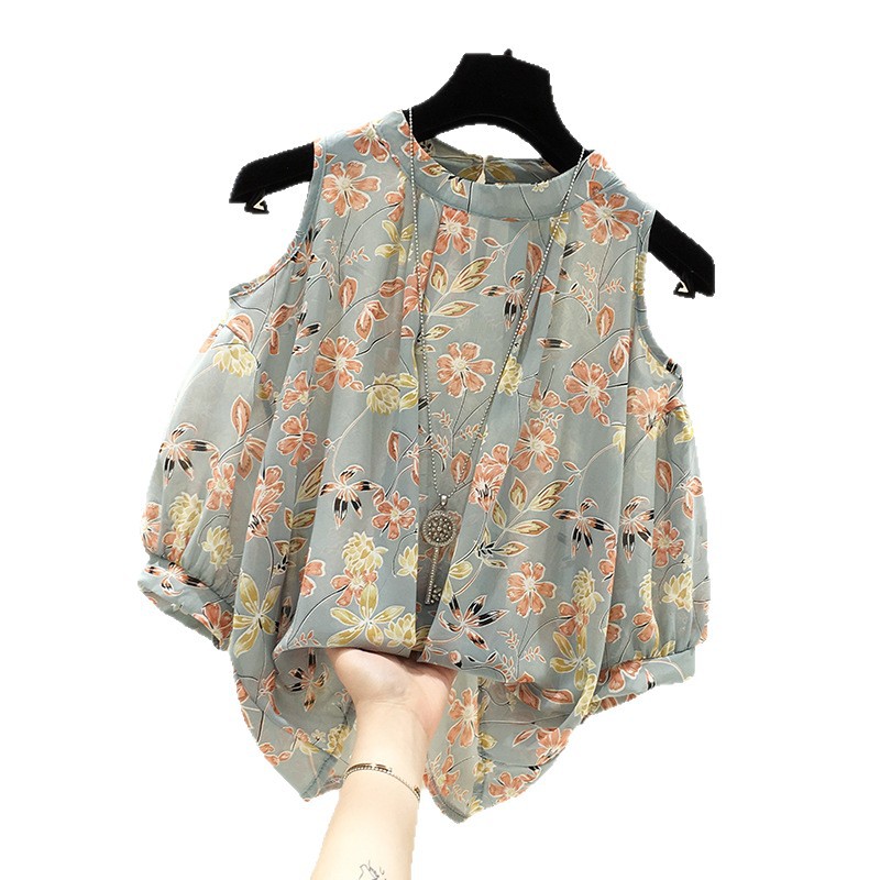 여성용 쉬폰 셔츠 2025 한국식 신작 여름 루즈한 반팔 오프 숄더 탑 꽃무늬 배를 덮는 셔츠