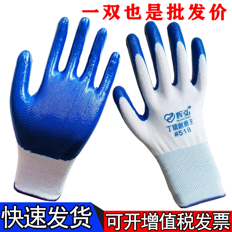 딩청 장갑 도매 고무 내유성 내마모성 보호 코팅 블루 블루 13 핀 나일론 니트릴 노동 장갑스토어 가기