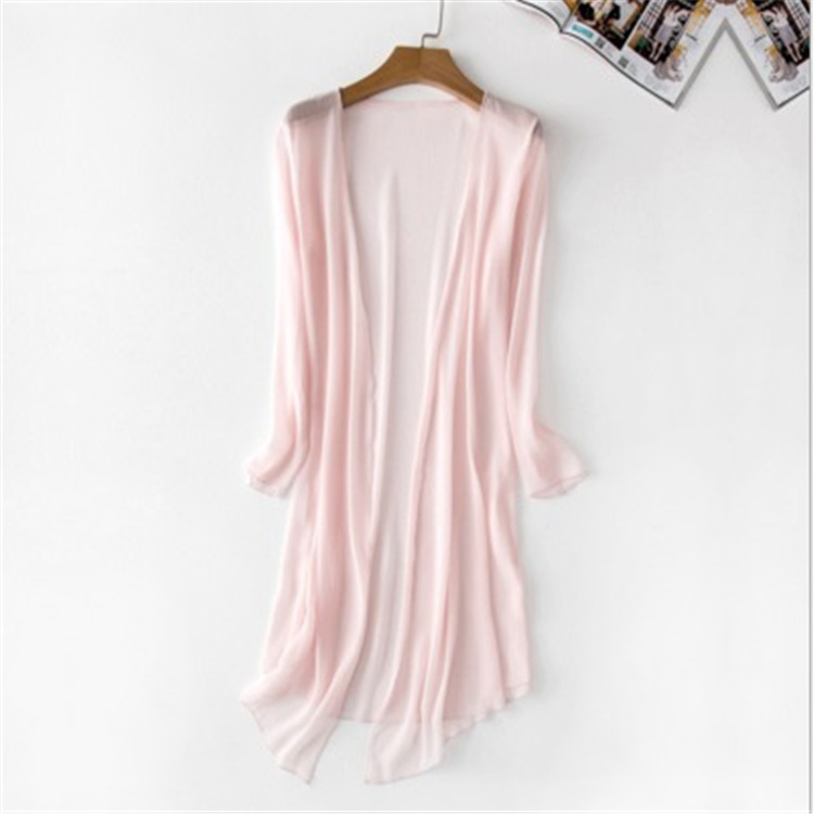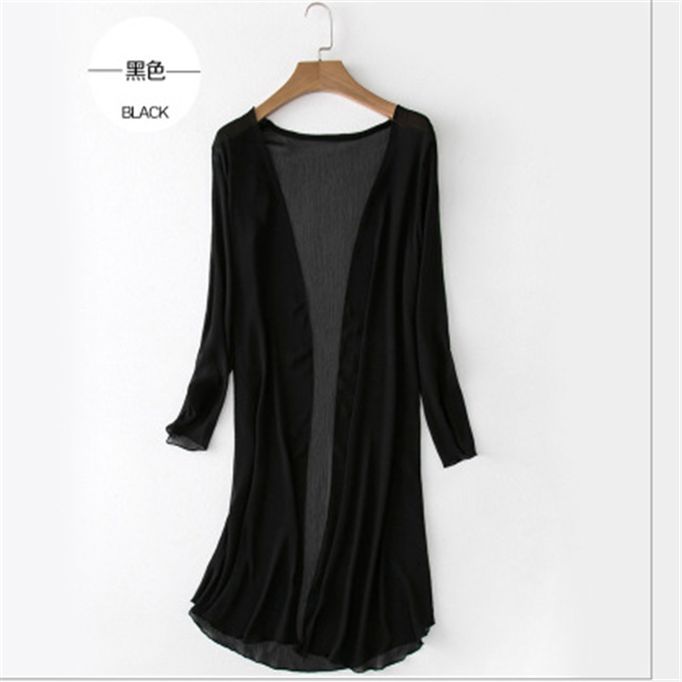 沙滩防晒衣女长袖夏雪纺衫开衫薄2019新中长款大码披肩外搭小外套
