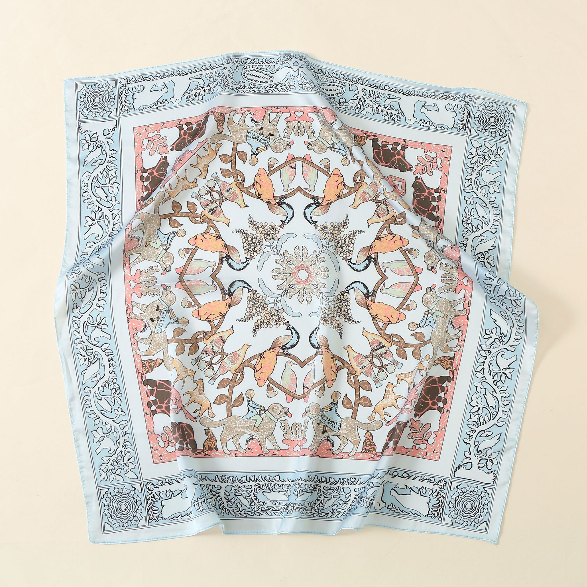 실크 스카프 빈티지 동물 인쇄 작은 사각형 스카프 여자의 얇은 봄 새로운 스타일 스카프 한국 장식 모든 일치 스튜어디스 스카프스토어 가기