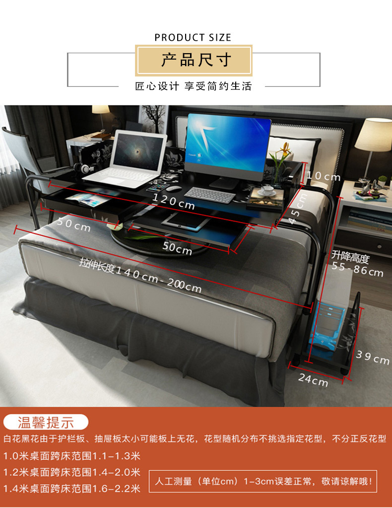 간단한 침대 텔레스코픽 노트북 데스크탑 가정용 더블 게으른 책상 이동식 리프팅 크로스 베드 컴퓨터 테이블스토어 가기