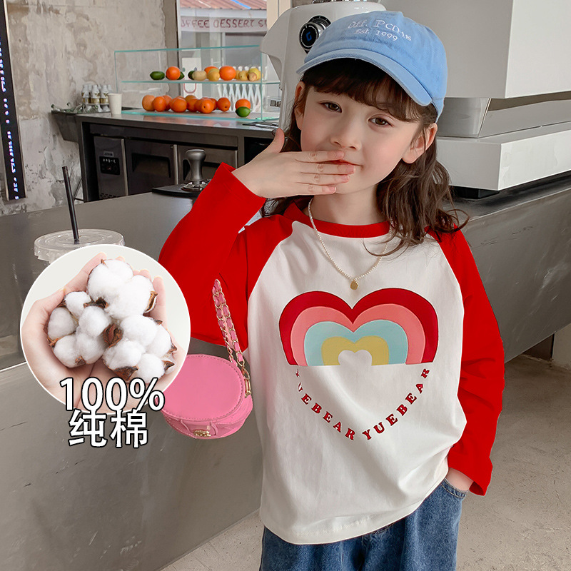 아동용 티셔츠, 여아 상의, 2025년 가을 신상 한국식 아동복, 여아용 패셔너블한 면 바닥 셔츠, 배송