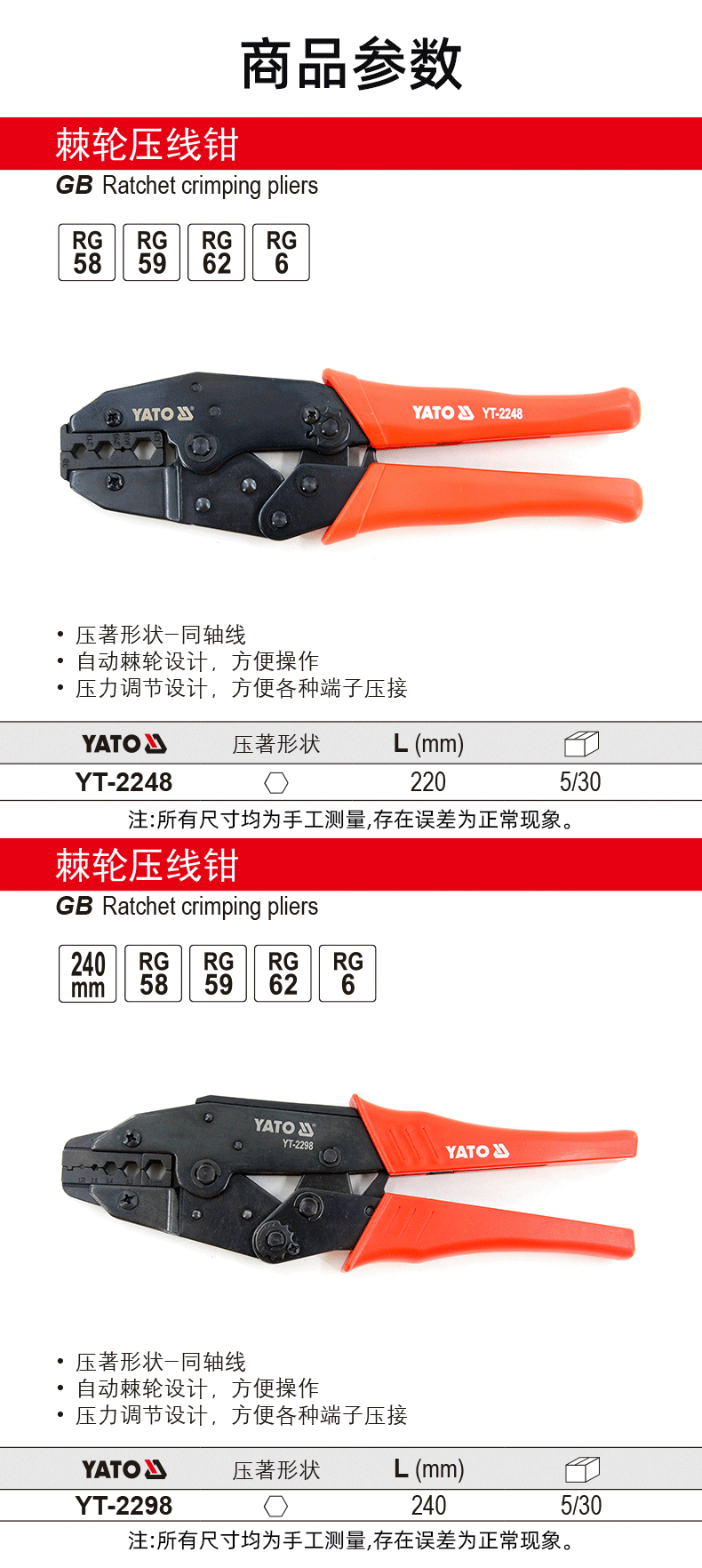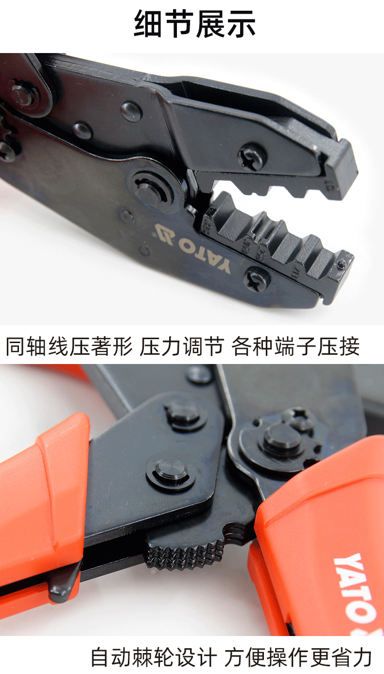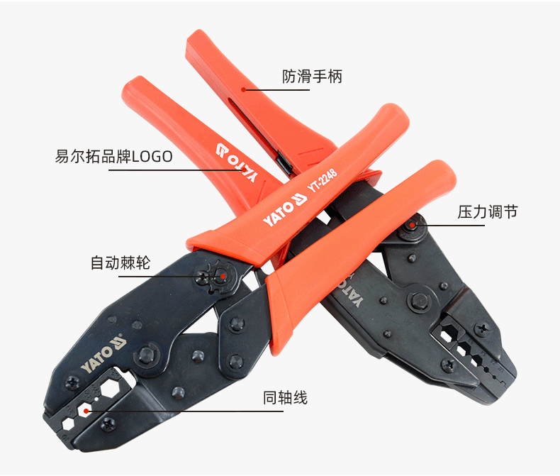 YATO 압착 플라이어 육각 동축 냉간 압착 터미널 압착 플러그 스프링 와이어 구리 코 래칫 타입 베어 터미널 플라이어