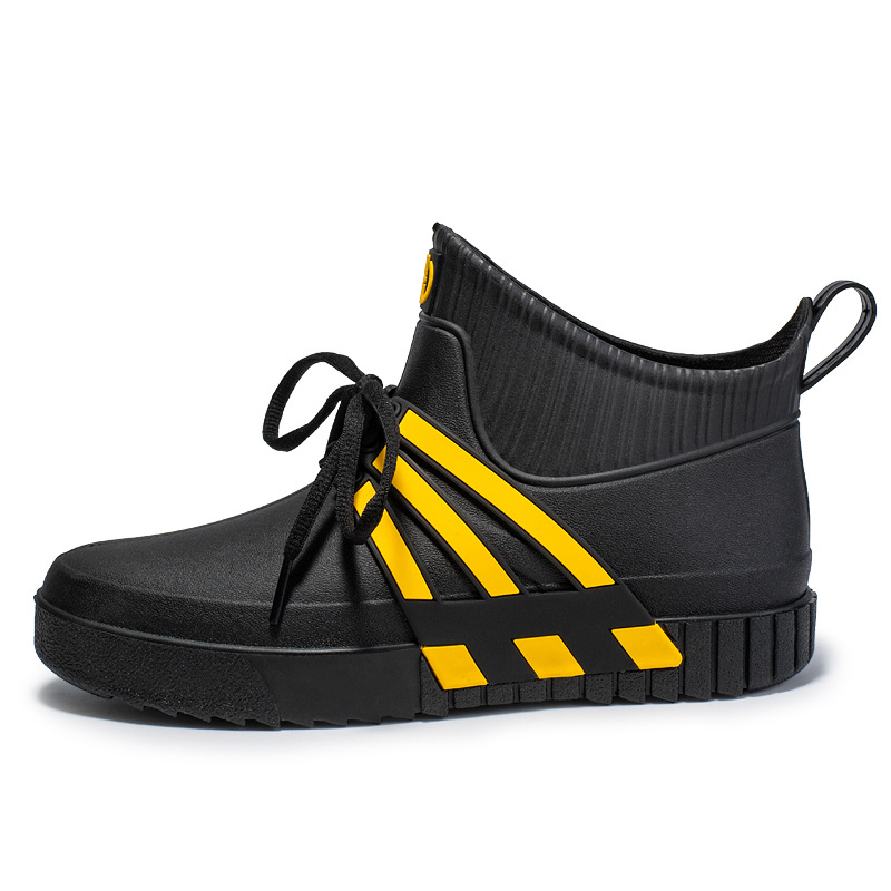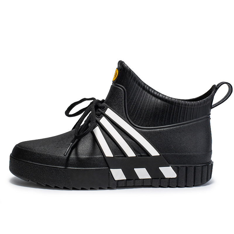 새로운 패션 미끄럼 방지 방수 장화 남성용 중간 배럴 장화 두꺼운 유행 낚시 주방 세차 플라스틱 접착제 신발 및 부츠스토어 가기