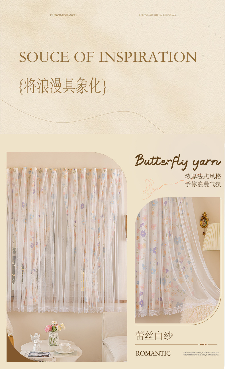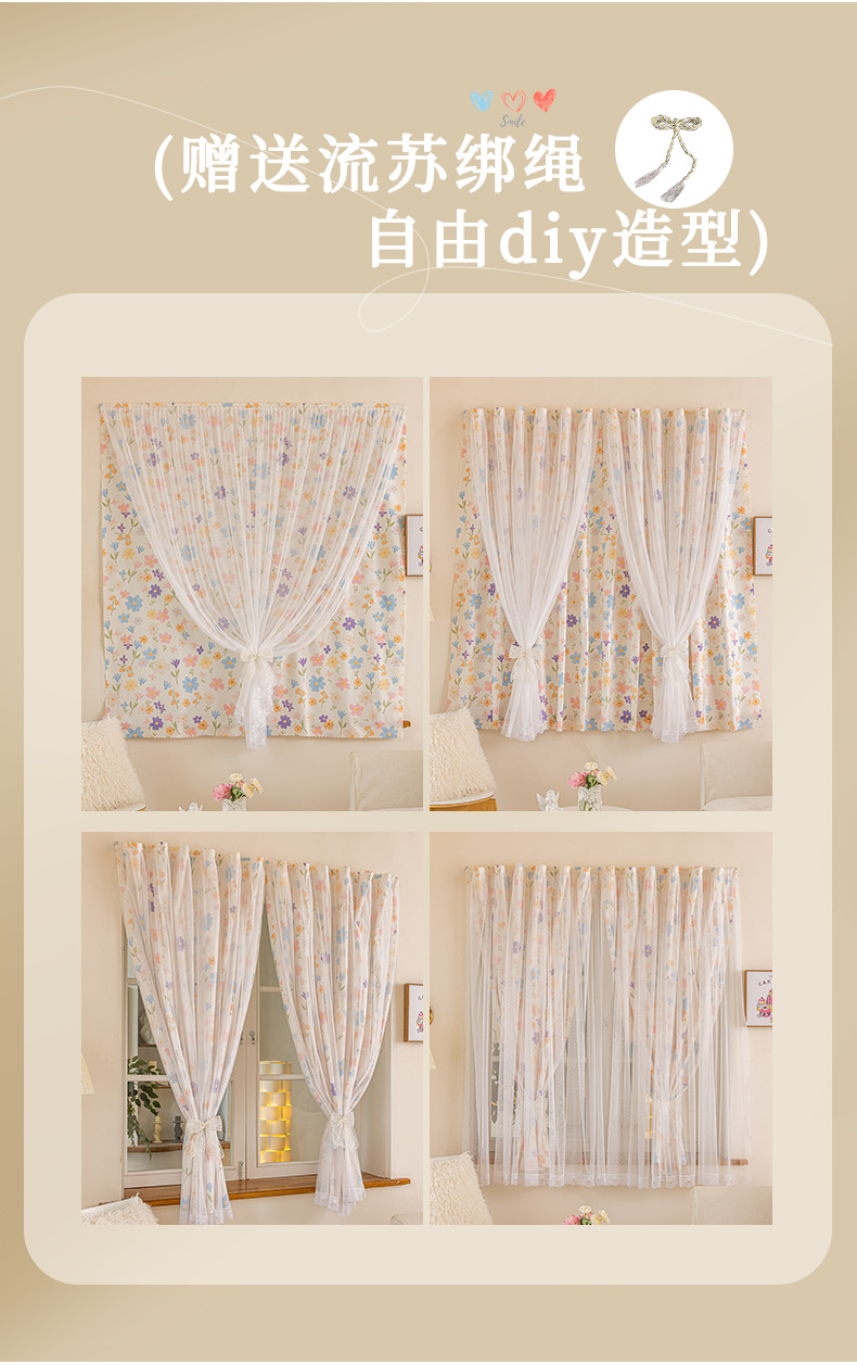 • 벨크로 스타일 - 화려한 꽃 - 거즈 커튼 일체형