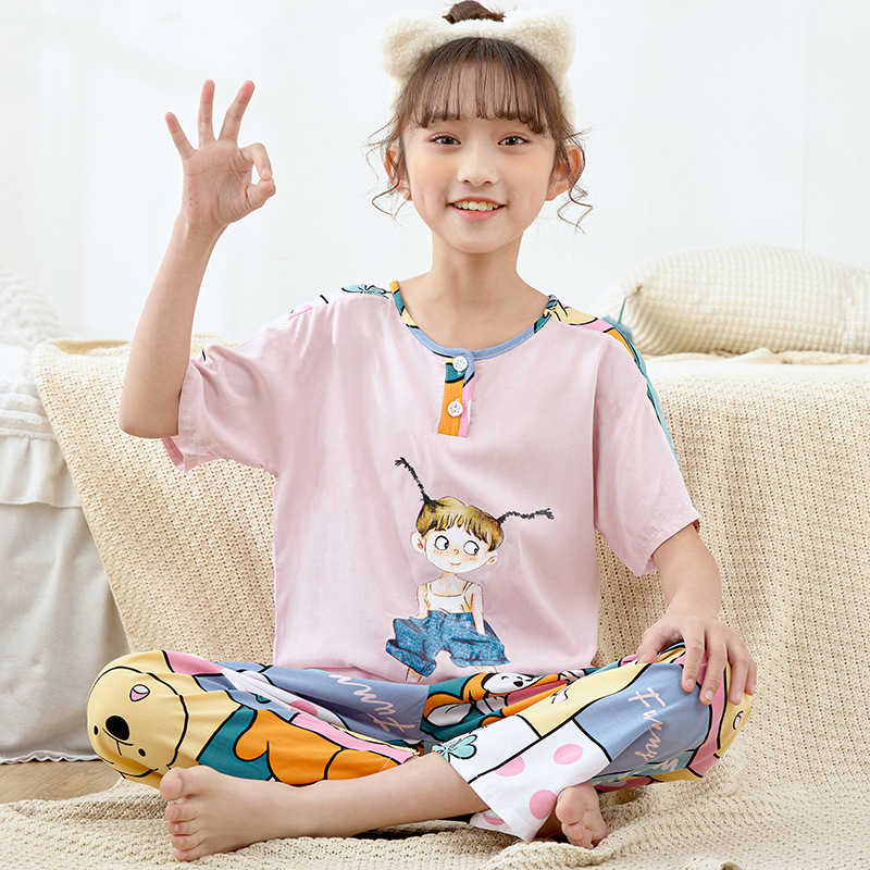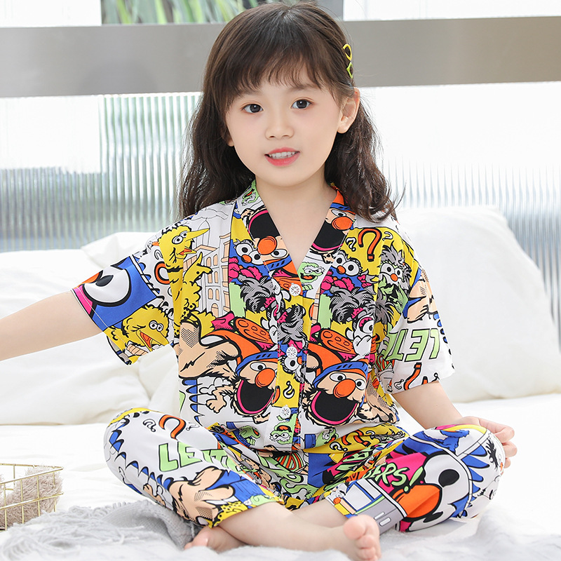 여름 어린이 잠옷, 아기 면 실크 정장, 가정복, 여아 에어컨 옷, 여름 소년 소녀 의류스토어 가기