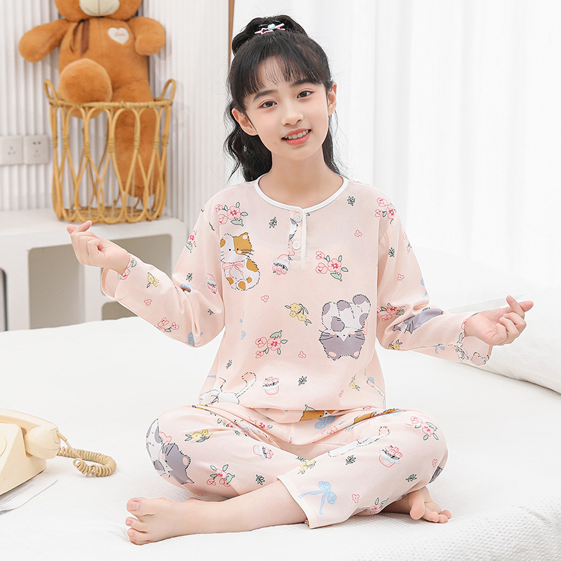 여름 어린이 잠옷, 아기 면 실크 정장, 가정복, 여아 에어컨 옷, 여름 소년 소녀 의류