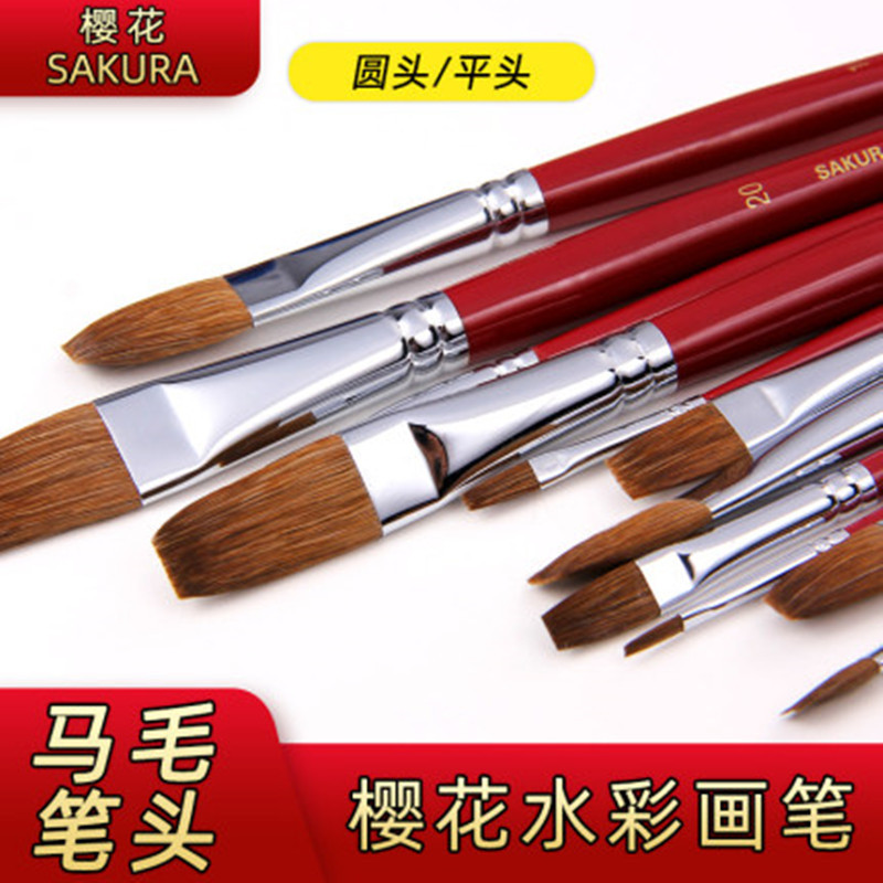 벚꽃 수채화 브러시 라운드 헤드 플랫 헤드 말 머리 Ginkle 브러시 컬러 페인트 브러시 초보자 손으로 그린 브러시