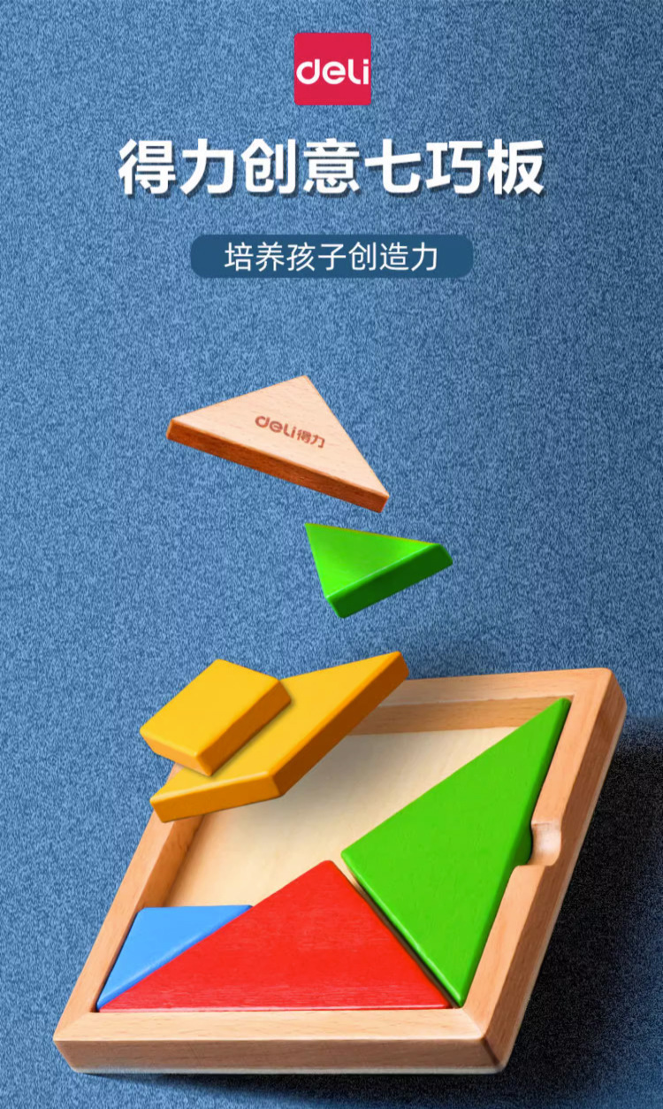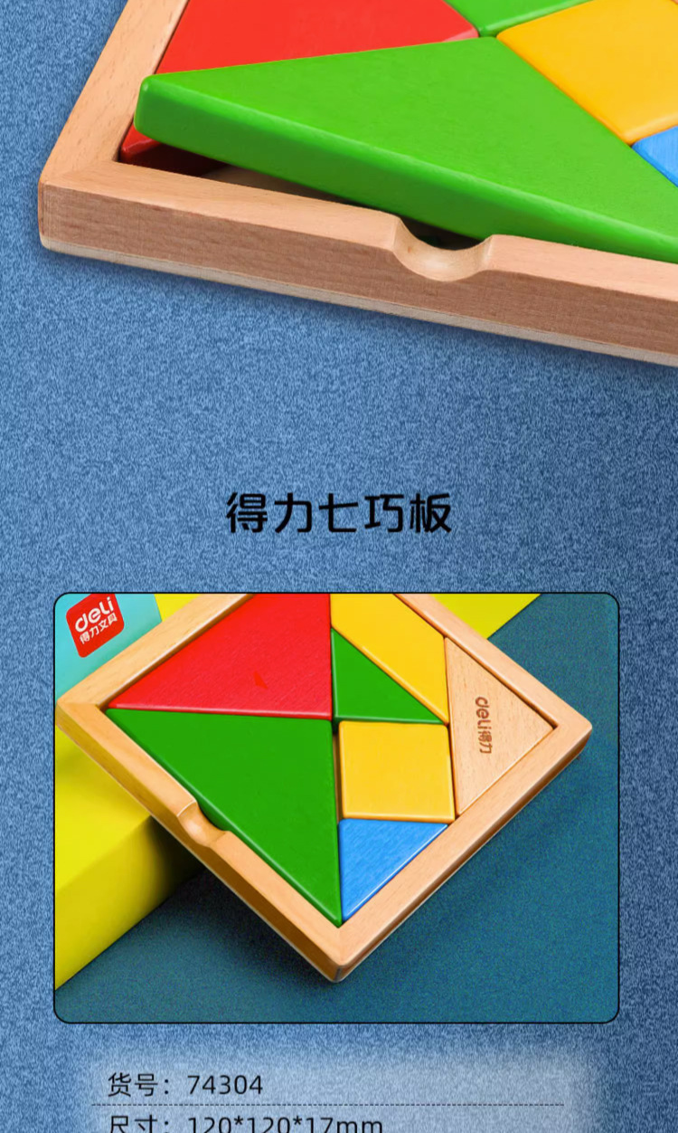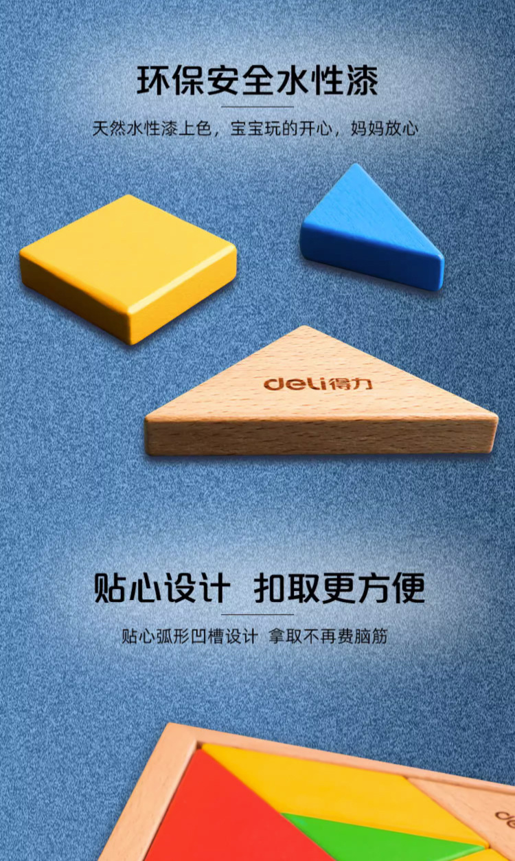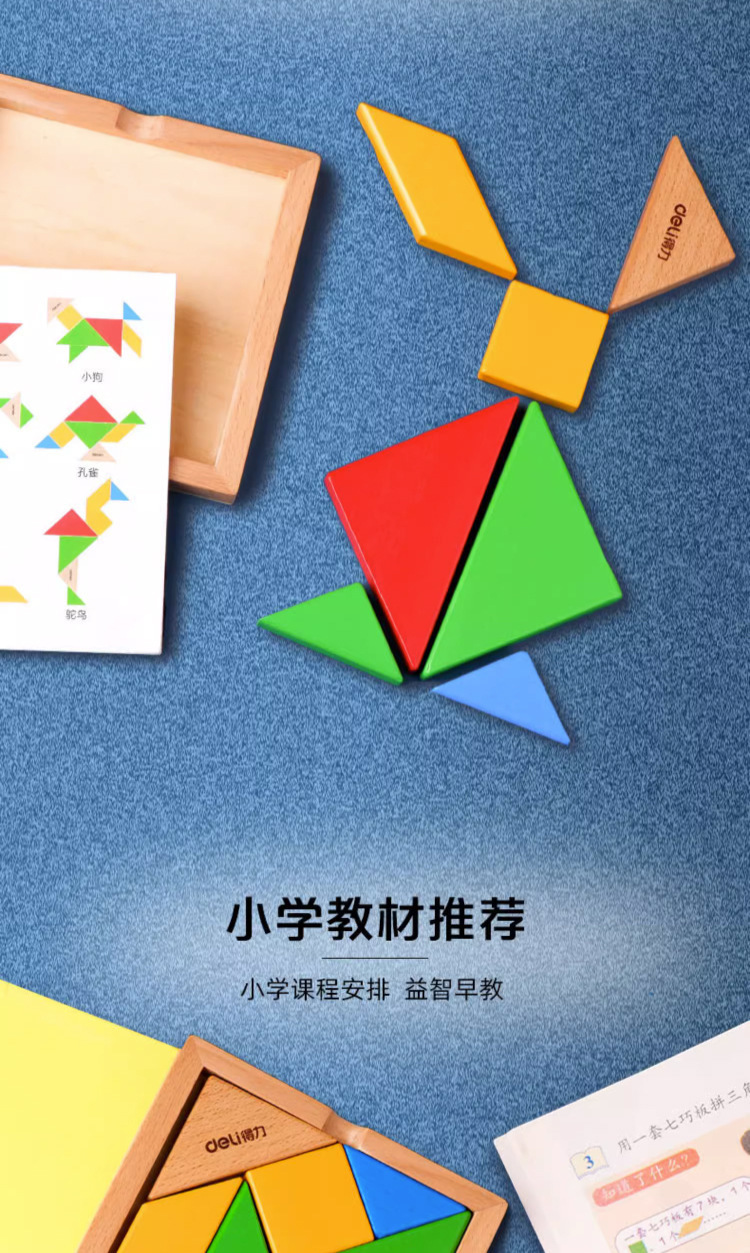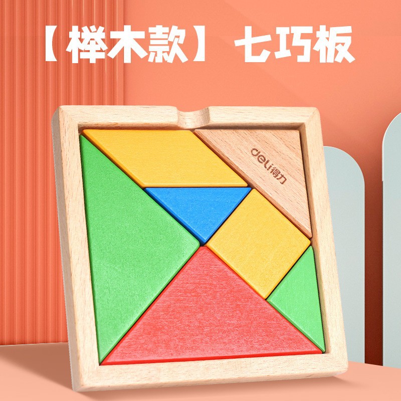 델리 Tangram 74304 어린이 유치원 모양인지 보드 유아 교육 완구 나무 Tangram