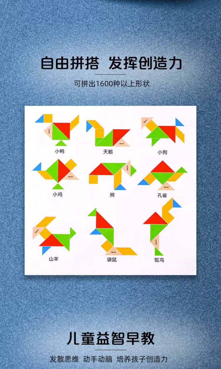 델리 Tangram 74304 어린이 유치원 모양인지 보드 유아 교육 완구 나무 Tangram스토어 가기