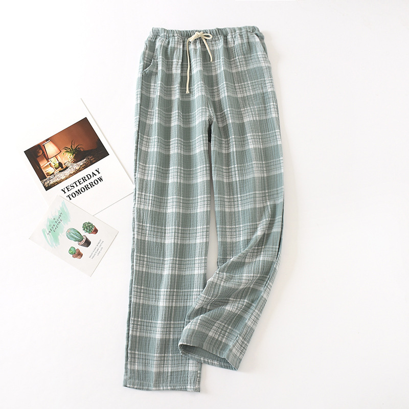 도매 봄과 여름 커플 파자마 바지 워싱 코튼 거즈 바지 얇은 일본 격자 무늬 남성과 여성의 크레이프 홈 바지스토어 가기