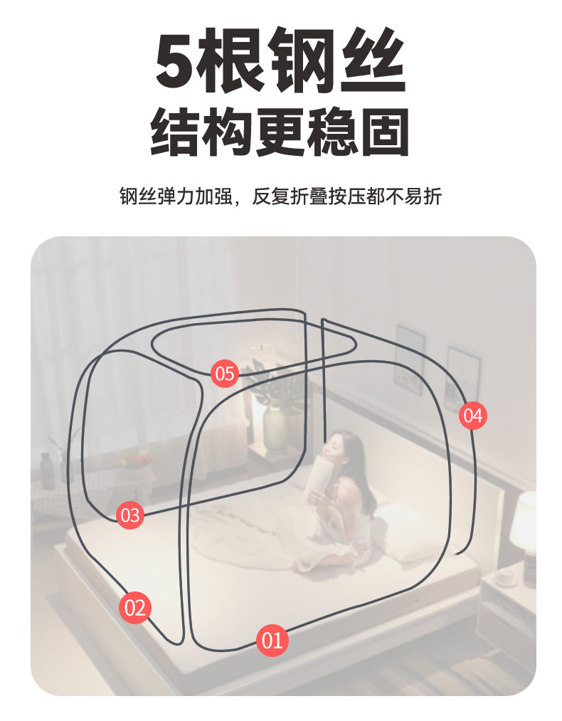 설치 무료 몽골어 유르트 모기장 1.5m 낙하 방지 클래스 A 스퀘어 탑 지퍼 암호화 미터 8 침대 커튼 접이식 스틸 와이어