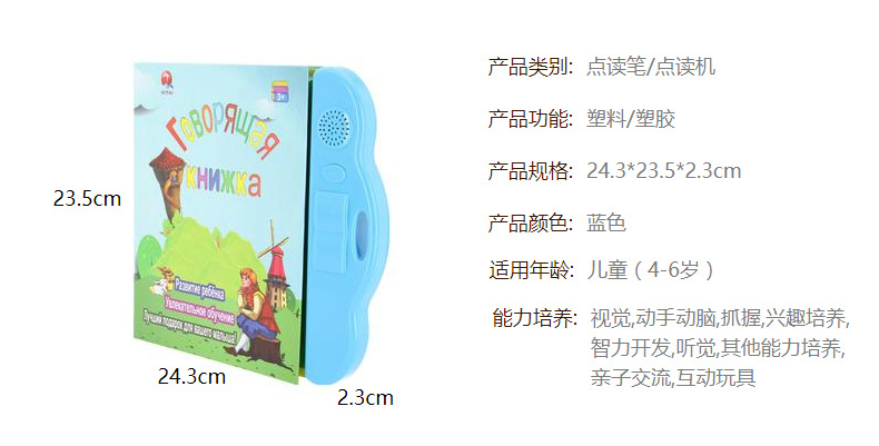 跨境kids toys早教机 英文电子发声书益智玩具有声点读书可做俄语