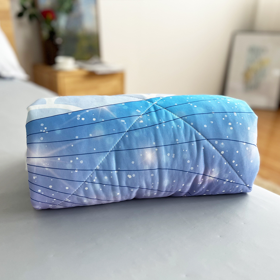 亲肤接触如一缕清泉水,在炎炎夏日带给肌肤丝丝凉意。夏日夜晚打开空调,盖上冰丝超柔凉感被,瞬间清爽又不失温度,舒适熟睡一整夜。