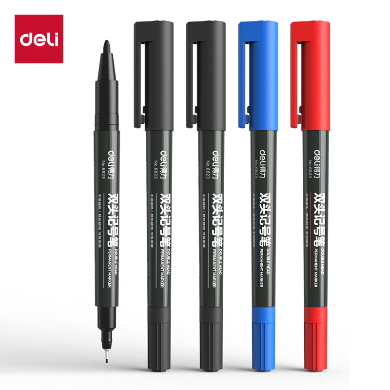 델리 6824 스몰 사이즈 더블 마커 오일 펜 블랙 Gouxian 마커 익스프레스 마크 펜 도매