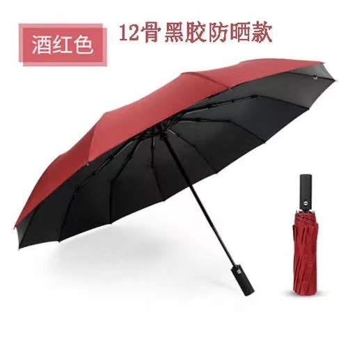 10 골 전자동 써니 우산 광고 우산 로고 증가 사업 검정 고무 선크림 3 개 접이식 우산 선물 일스토어 가기