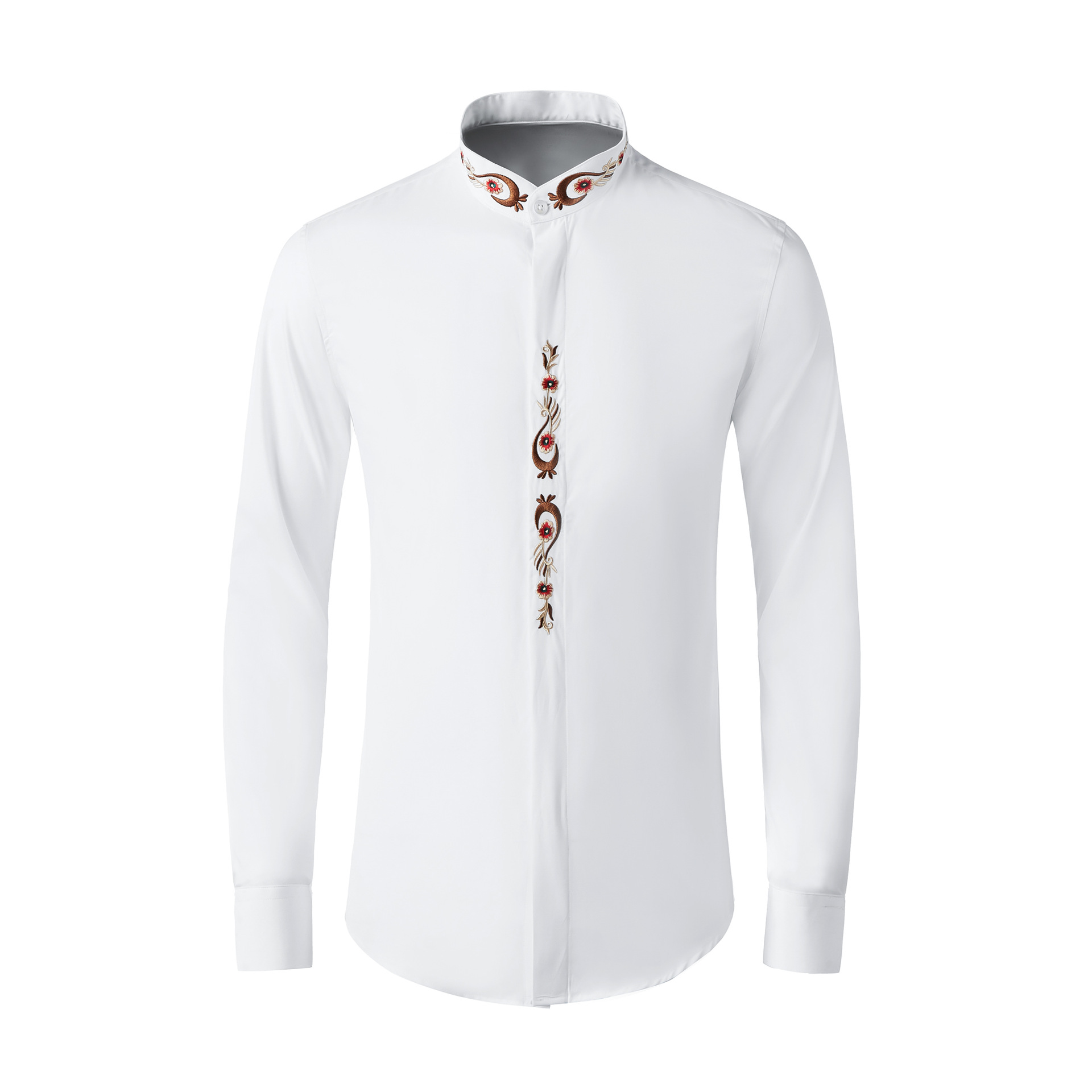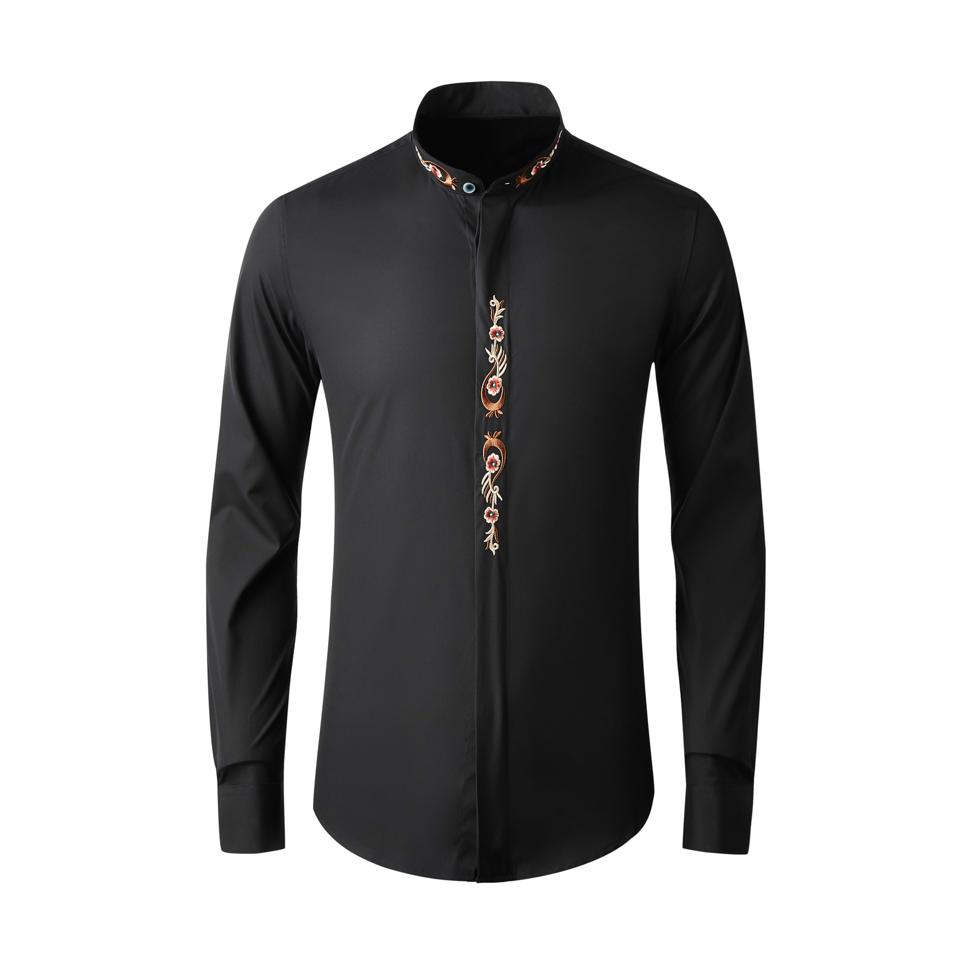2021 Xinyi 새로운 스타일 피닉스 꼬리 그림 자수 긴 소매 중국 스타일 남성복 스탠드 칼라 남성 셔츠 에스닉 재고