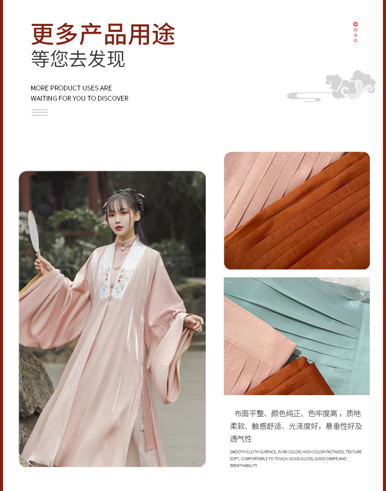 스트리밍 일반 원사 한푸 말 얼굴 스커트 주름 원단 대나무 반짝이 새틴 실키 밝은 실크 홍합과 뼈 느낌 중괄호 원단