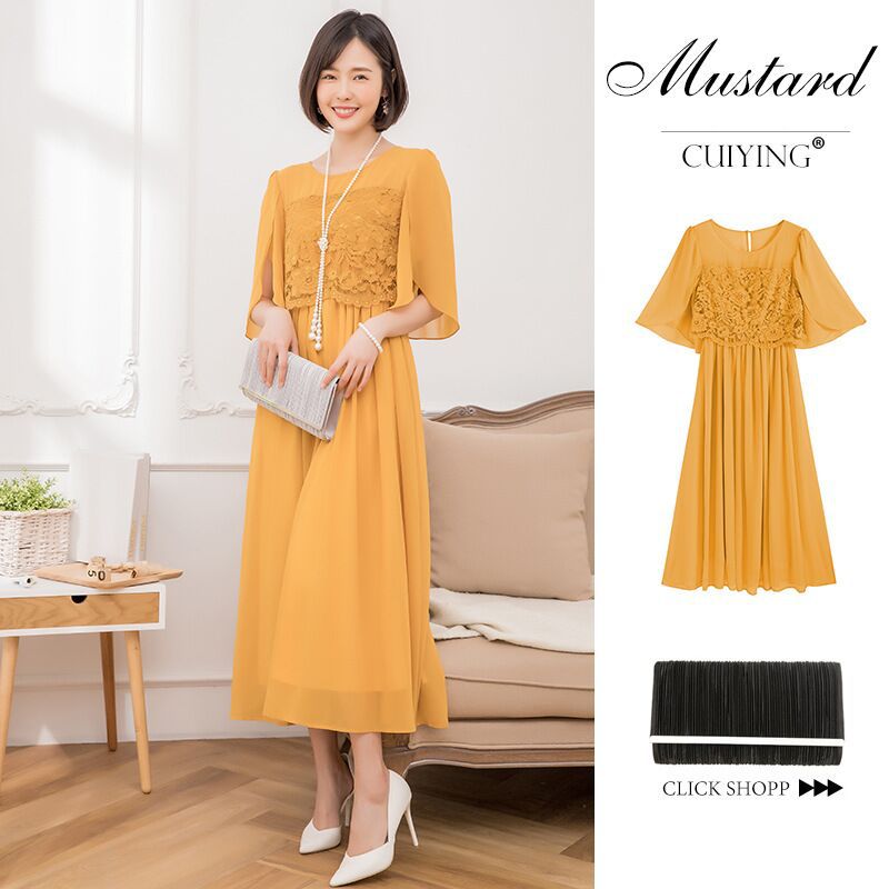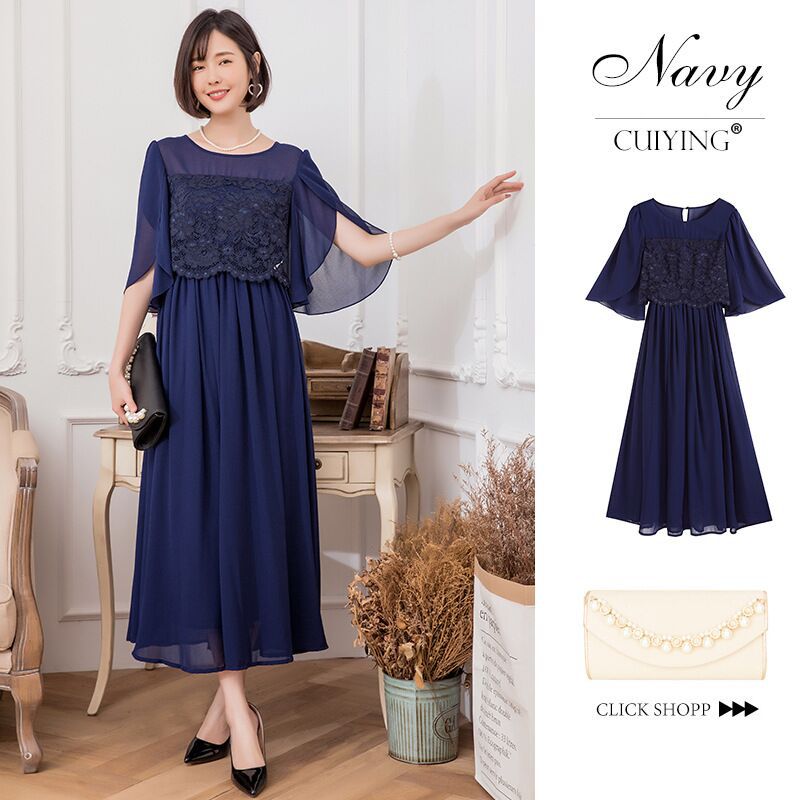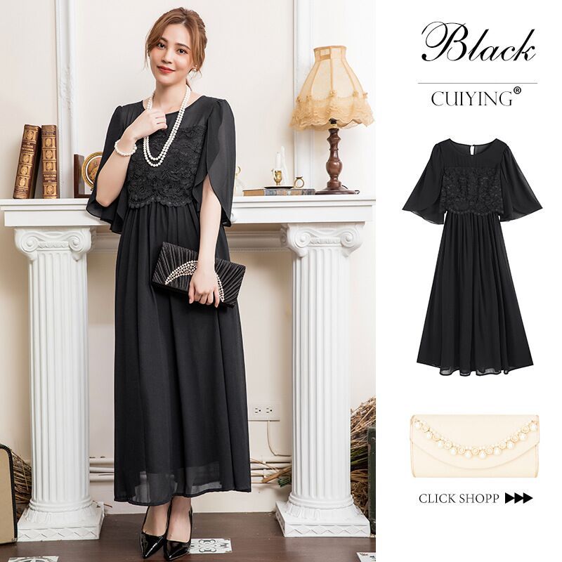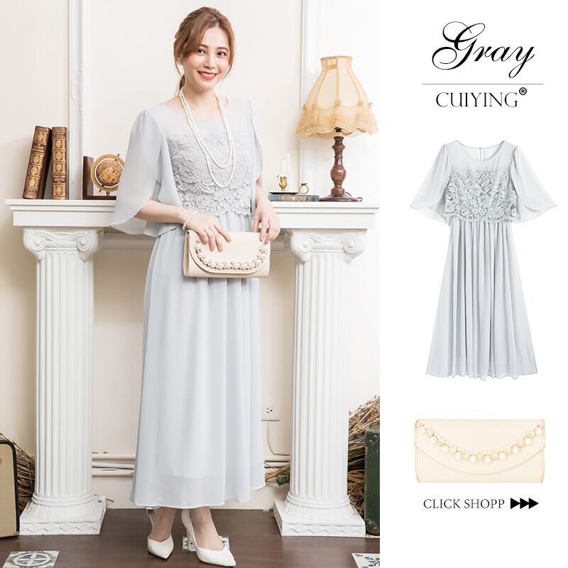 봄과 여름 새로운 레이스 바느질 비행 소매 높은 허리 우아한 기질 통글 긴 원피스 원피스 88336스토어 가기