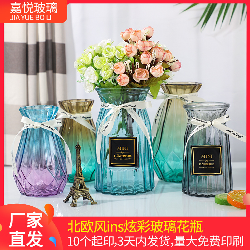 공장 도매 북유럽 수경 유리 꽃병 색상 말린 꽃병 데스크탑 작은 신선한 가정 거실 장식 장식품스토어 가기